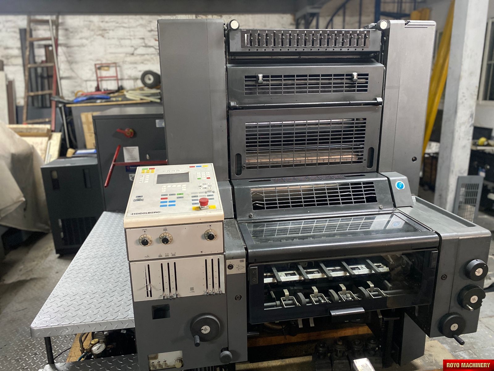 Plus Version, Suction Tape on Feeder, Stream Feeder, Ultrasonic double sheet detector, Low pile delivery, Double sheet detector, Bacher pin register on clamps, Autoplate, Automatic Blanket Roller and Impression Cylinder Wash, Alcolor Dampening, 15000 sph, Preset, Segmented ink blades, Weko powder spray, Diagonal Register, Chain delivery, Gearing for N&P, Technotrans Refrigerated Recirculator, Preset Feeder, Equipment located in Colombia