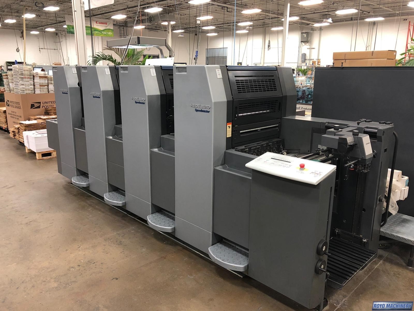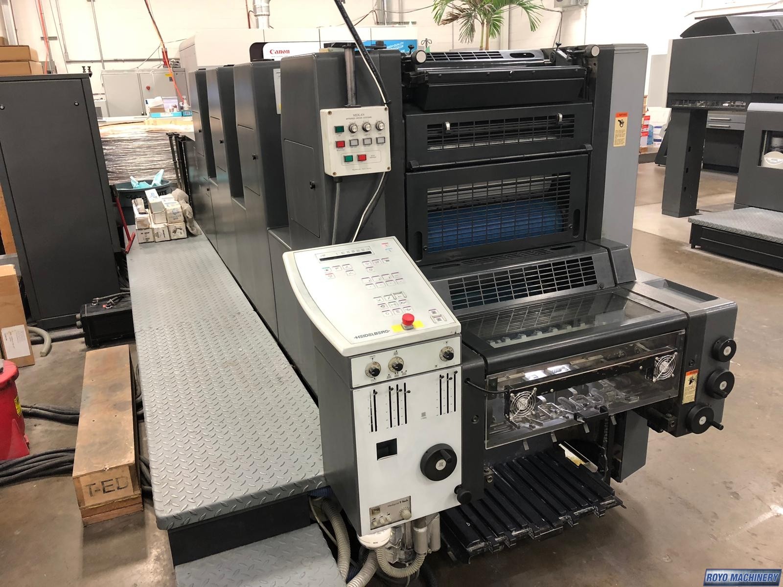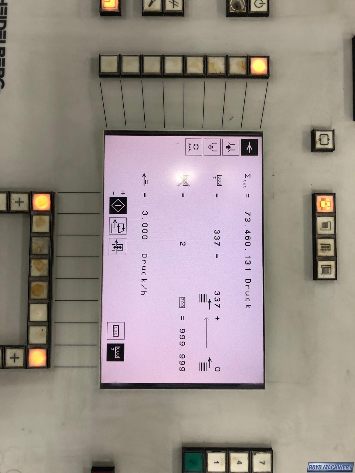 Suction Tape on Feeder, Stream Feeder, Electronic sidelay control, Preset, Preset Feeder, Low pile delivery, Double sheet detector, Diagonal Register, Automatic Blanket Roller and Impression Cylinder Wash, Silver Series Machine, Bacher pin register on clamps, Autoplate, Mediprint Spray Powder Unit, Alcolor Dampening, 15000 sph, Technotrans Refrigerated Recirculator, CPTronic, CPC 1.04