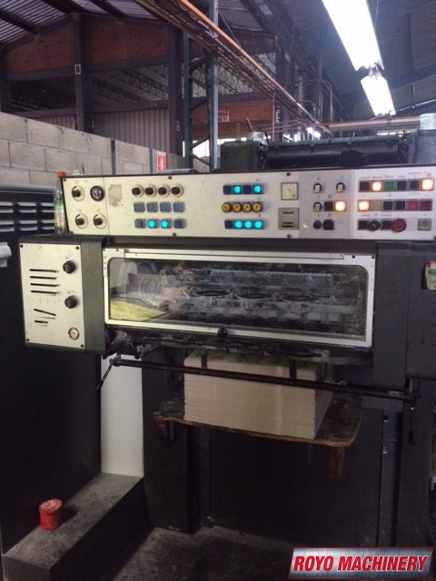 Stream Feeder, Alcolor Dampening, Bacher pin register on clamps, Chrome Blanket Cylinders, CPC 1.03, Grafix Exactomat powder spray, Non-stop delivery, High pile delivery, Chrome Impression Cylinder, Superblues, Quick action plate clamps, Double sheet detector, 12000 sph