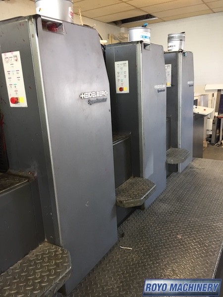 Grafix Alphatronic 200 powder spray, Electronic sidelay control, Suction Tape on Feeder, Stream Feeder, Technotrans Refrigerated Recirculator, Double sheet detector, Diagonal Register, Preset Feeder, Preset, Bacher pin register on clamps, Autoplate, Automatic Blanket Roller and Impression Cylinder Wash, Alcolor Dampening, 15000 sph, CP2000, Low pile delivery