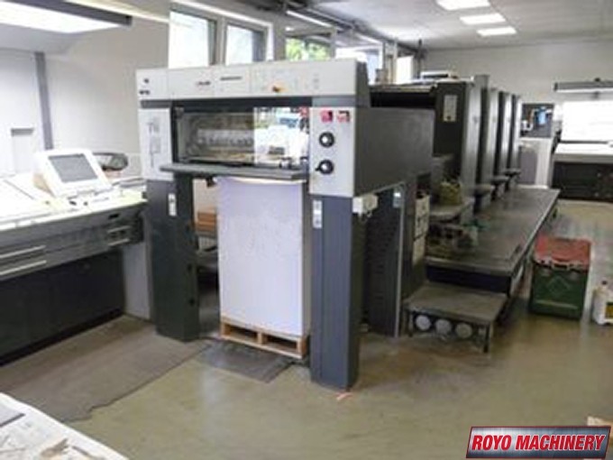 Suction Tape on Feeder, Stream Feeder, Steel plate in feeder, Steel plate in delivery, Prinect Press Center, High pile delivery, Grafix Alphatronic 200 powder spray, Double sheet detector, C Format: 53 x 74 cm, Diagonal Register, Autoplate, Bacher pin register on clamps, Automatic Blanket Roller and Impression Cylinder Wash, Alcolor Dampening, 13000 sph