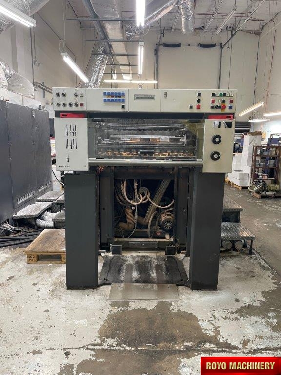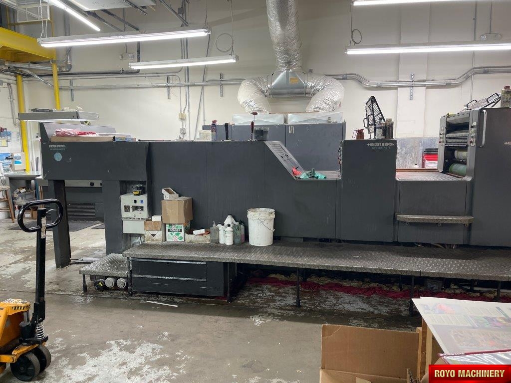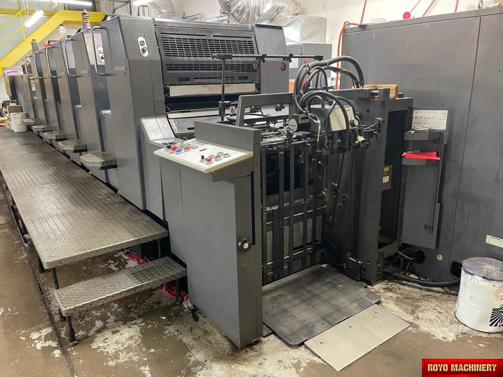 Electronic sidelay control, CPC 1.04, CPTronic, Bacher pin register on clamps, Sheet Decurler, In-line coater, Stream Feeder, Double sheet detector, 15000 sph, Alcolor Dampening, Automatic Blanket Roller and Impression Cylinder Wash, Suction Tape on Feeder, Autoplate, Grafix powder spray, Ultrasonic double sheet detector, Preset, Steel plate in delivery, IR Dryer, Alcolor Vario Dampening, Diagonal Register, Non-stop delivery, C Format: 53 x 74 cm, High pile delivery, Refrigerated Recirculator