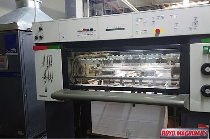 Stream Feeder, Steel plate in delivery, Royse Refrigerated Recirculator, Preset, Powder Spray, Non-stop feeder, Non-stop delivery, IR Dryer, Ink temperature control, In-line coater, High pile delivery, Double sheet detector, Diagonal Register, CP2000, Bacher pin register on clamps, Autoplate, Automatic Blanket Roller and Impression Cylinder Wash, Alcolor Dampening, 15000 sph, Chrome Blanket Cylinders