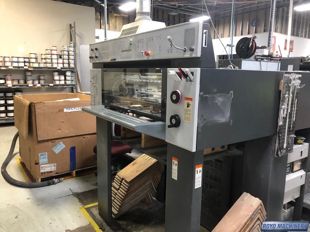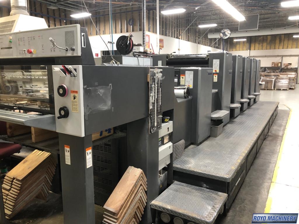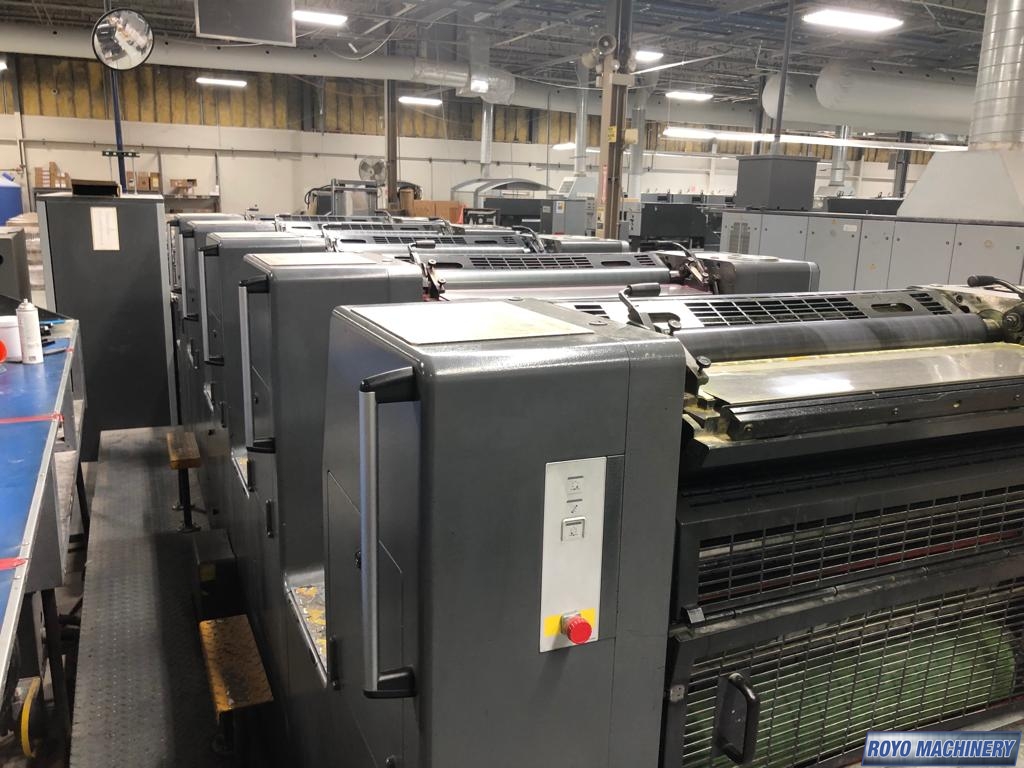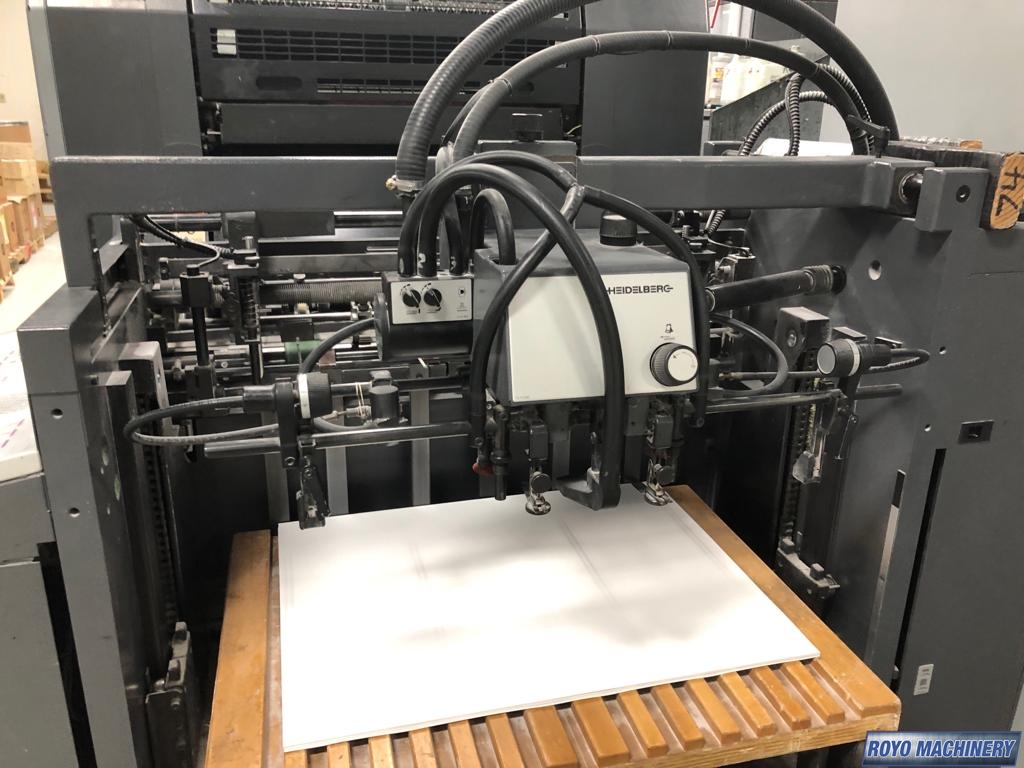 Stream Feeder, Steel plate in feeder, Suction Tape on Feeder, Steel plate in delivery, Silver Series Machine, In-line coater, High pile delivery, Electronic sidelay control, Diagonal Register, CP2000, Preset, Ultrasonic double sheet detector, Automatic Blanket Roller and Impression Cylinder Wash, Autoplate, Bacher pin register on clamps, Alcolor Dampening, Extended delivery, Technotrans Refrigerated Recirculator, Grafix powder spray, Heidelberg DryStar IR Dryer, 15000 sph, Axis control