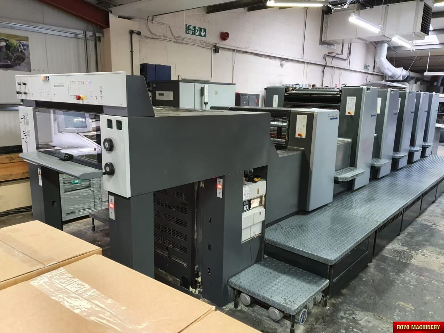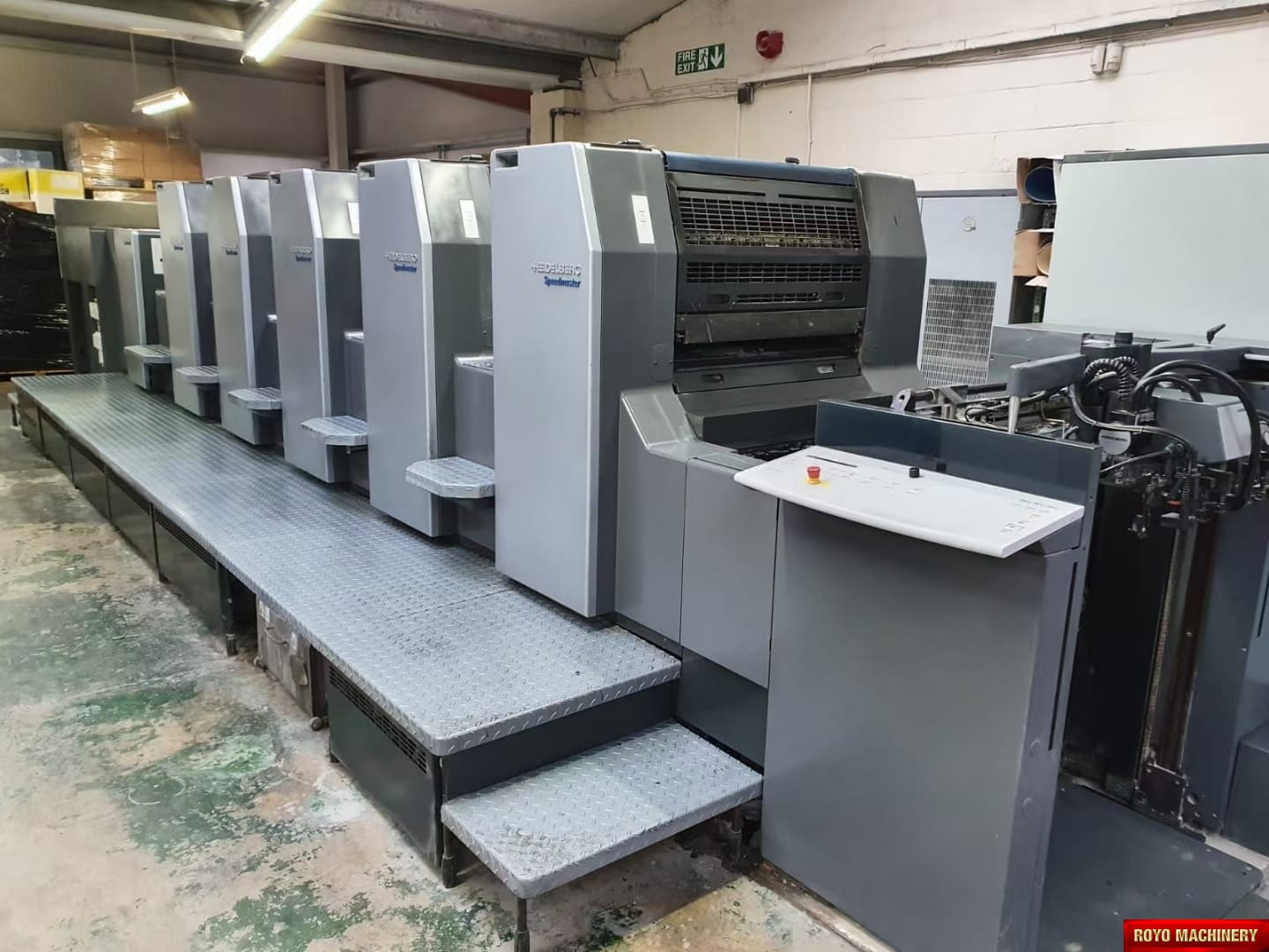 Stream Feeder, Suction Tape on Feeder, Steel plate in feeder, Steel plate in delivery, Silver Series Machine, In-line coater, High pile delivery, Electronic sidelay control, Diagonal Register, CP2000, Alcolor Vario Dampening, Ultrasonic double sheet detector, Automatic Blanket Roller and Impression Cylinder Wash, Autoplate, Bacher pin register on clamps, C Format: 53 x 74 cm, Chromed plate cylinders, Chrome Impression Cylinder, Technotrans Refrigerated Recirculator, Axis control, Weko powder spray, Heidelberg DryStar IR Dryer, 15000 sph