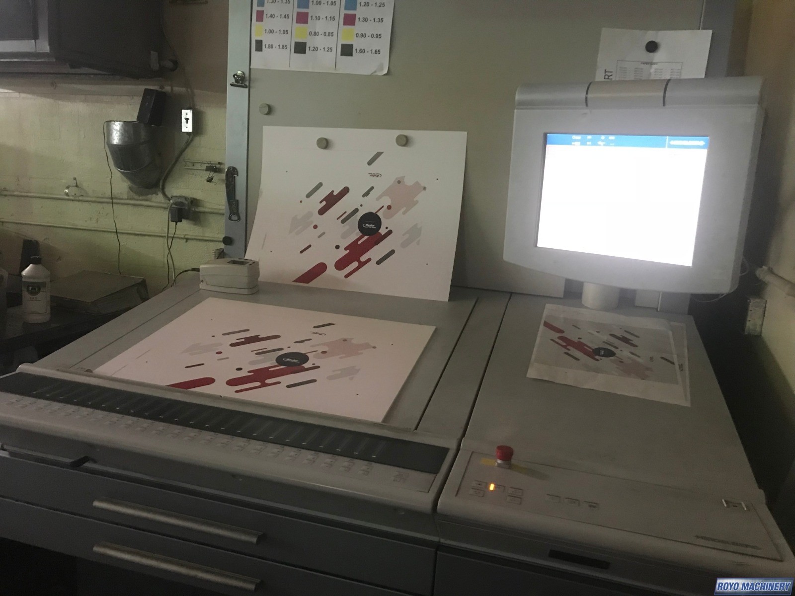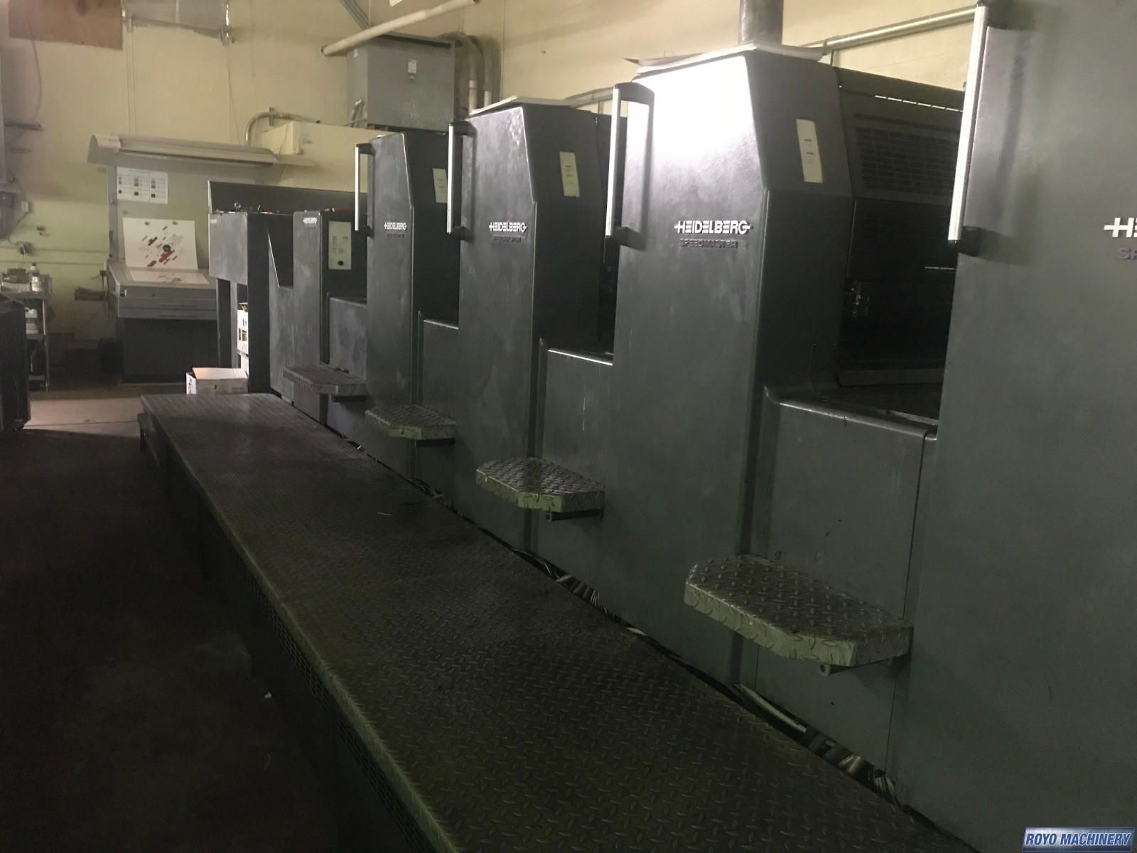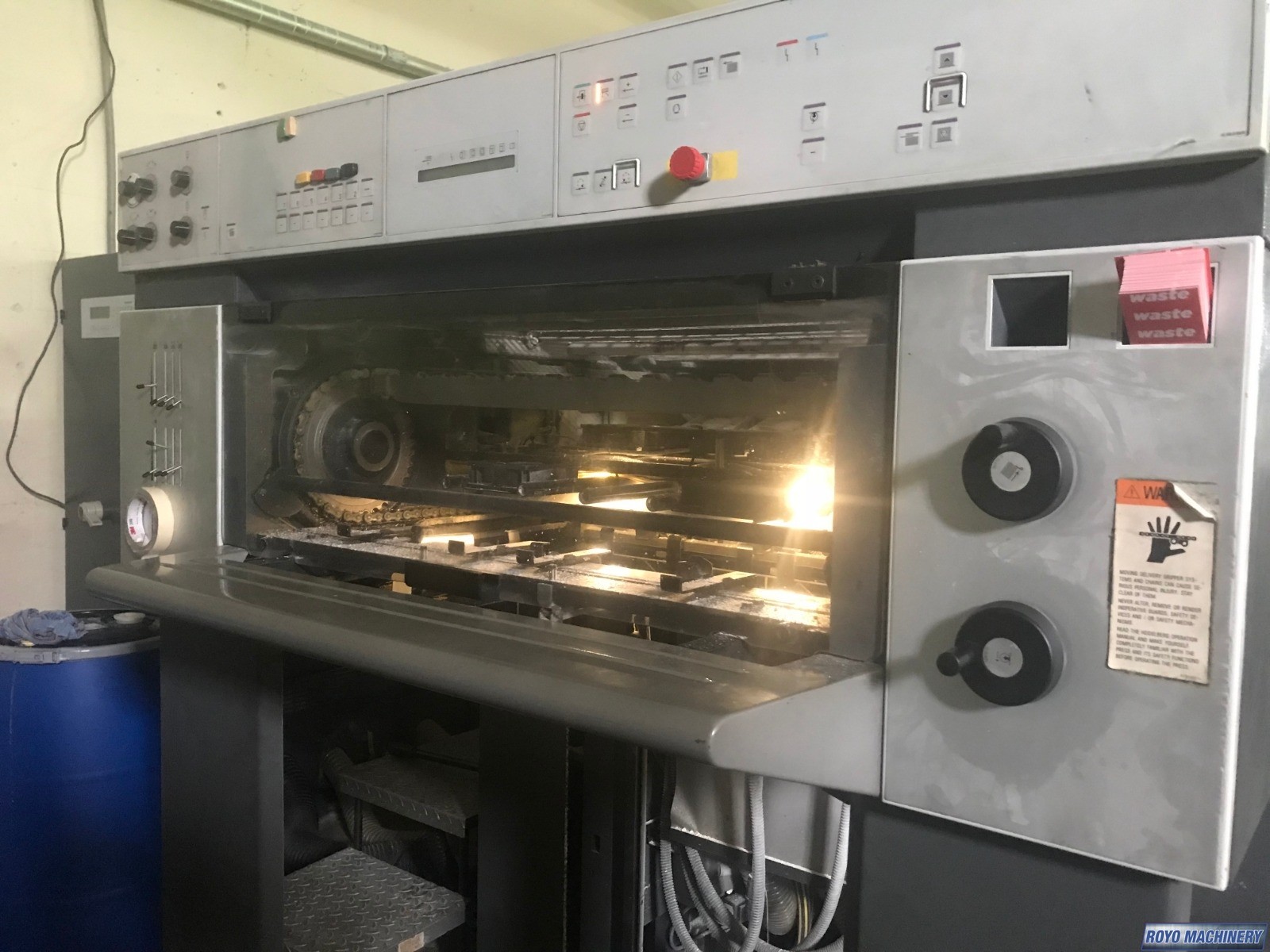 Preset Feeder, Ultrasonic double sheet detector, Suction Tape on Feeder, Steel plate in delivery, Stream Feeder, Sheet Decurler, Preset, In-line coater, Electronic sidelay control, High pile delivery, Grafix IR Dryer, Diagonal Register, Grafix Alphatronic 200 powder spray, Ink temperature control, Technotrans Combistar, Bacher pin register on clamps, Autoplate, Automatic Blanket Roller and Impression Cylinder Wash, Alcolor Dampening, 15000 sph, Superblues, C Format: 53 x 74 cm, CP2000