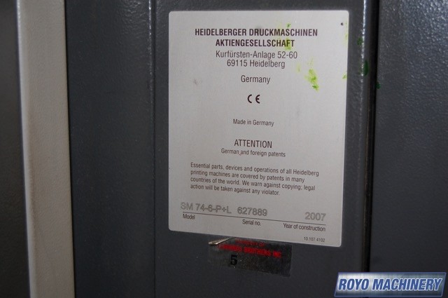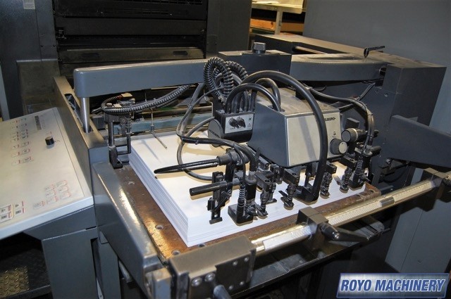 Suction Tape on Feeder, Non-stop feeder, Steel plate in delivery, Preset Feeder, In-line coater, High pile delivery, Double sheet detector, Diagonal Register, CP2000, Heidelberg CombiStar with CAN, Bacher pin register on clamps, Autoplate, Automatic Blanket Roller and Impression Cylinder Wash, Alcolor Vario Dampening, 15000 sph, Non-stop delivery, Weko powder spray, Technotrans Refrigerated Recirculator, IR Dryer, Axis control, Heidelberg DryStar 2000 with CAN, Preset