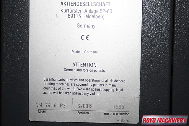 Stream Feeder, Diagonal Register, Suction Tape on Feeder, Sheet Decurler, Preset, High pile delivery, Double sheet detector, CPTronic, CPC 1.04, Automatic Blanket Roller and Impression Cylinder Wash, Bacher pin register on clamps, Autoplate, Alcolor Dampening, 15000 sph