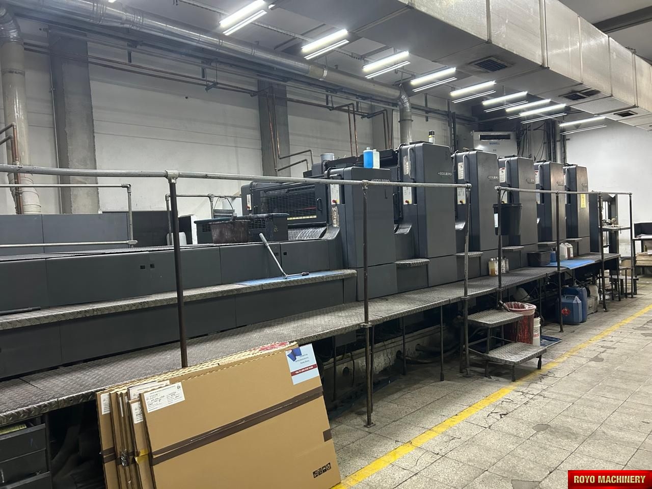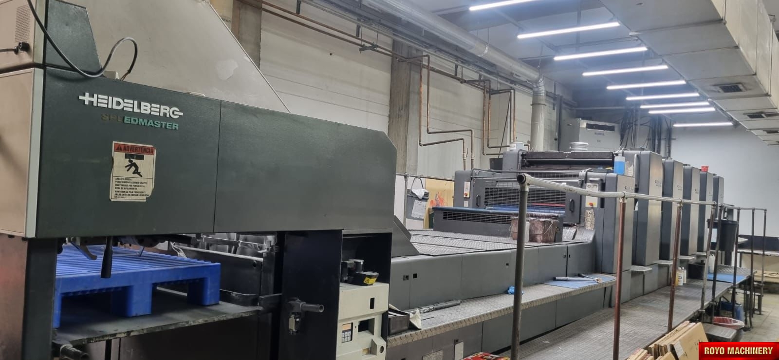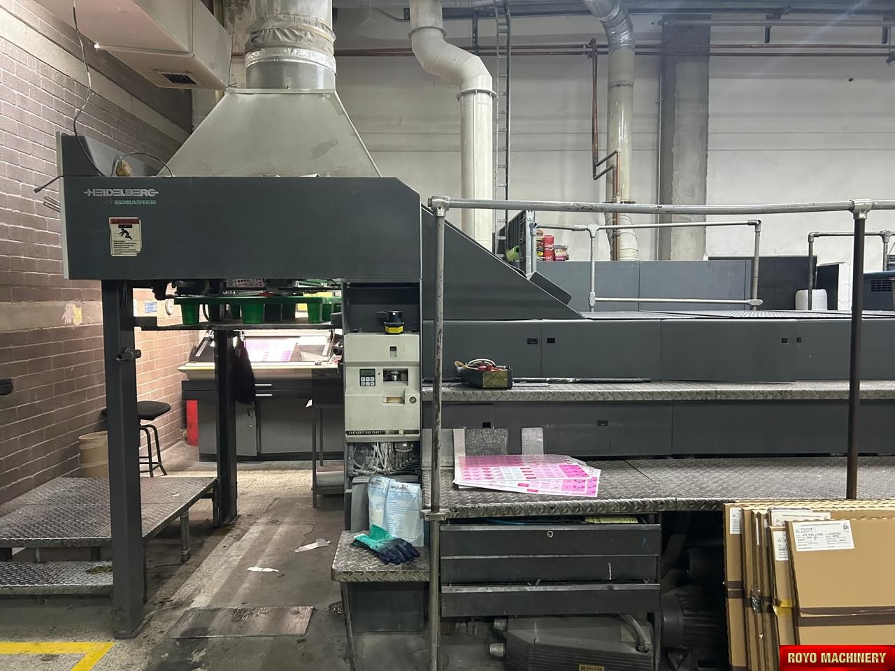 Stream Feeder, CP2000, Automatic ink roller wash, Preset, Steel plate in feeder & delivery, In-line coater, Technotrans Combistar, Extended delivery, Double sheet detector, Diagonal Register, Pre-loader, Non-stop delivery, Bacher pin register on clamps, Autoplate, Technotrans Refrigerated Recirculator, Alcolor Dampening, Sheet Decurler, Preset Feeder, Automatic Blanket and Roller Washer, 15000 sph, Heidelberg DryStar IR Dryer, Grafix powder spray