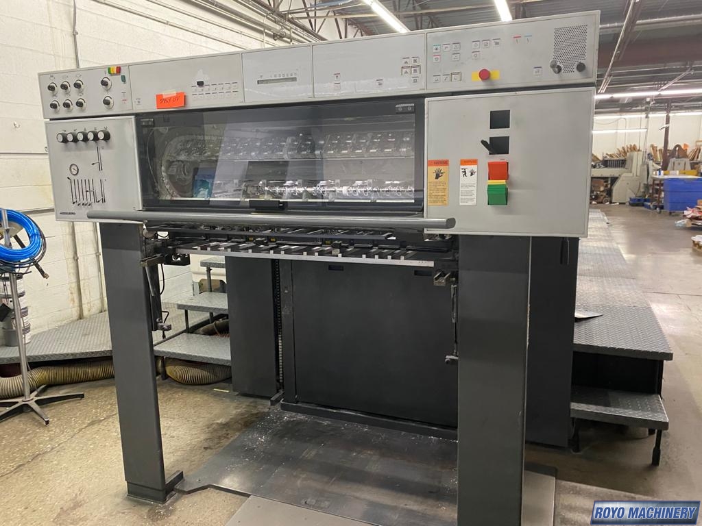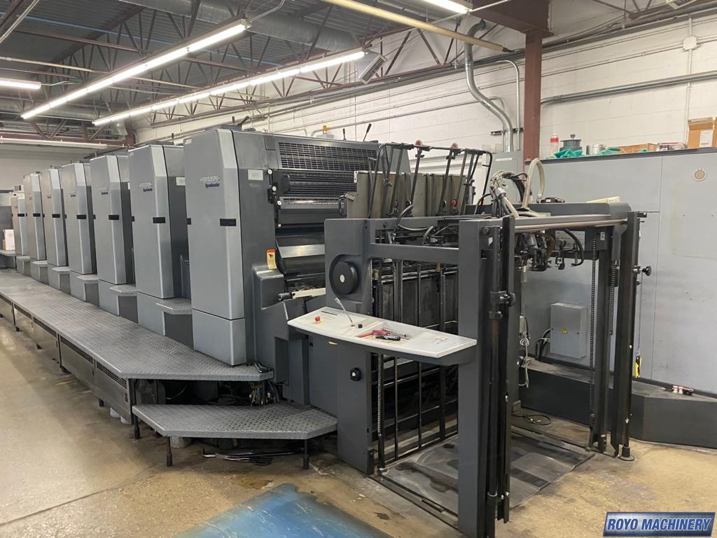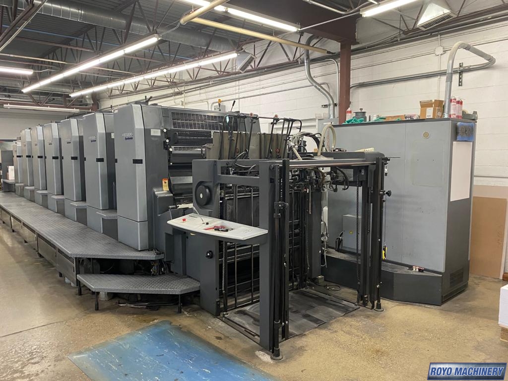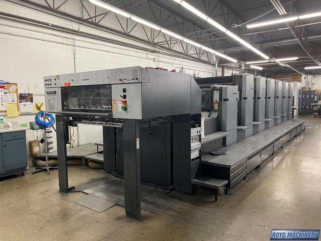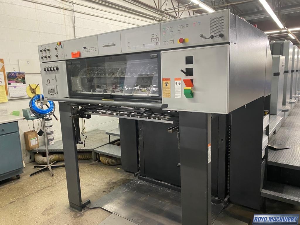 Refrigerated Recirculator, Stream Feeder, Steel plate in feeder, Steel plate in delivery, Sheet Decurler, Grafix powder spray, 15000 sph, Non-stop delivery, In-line coater, Preset, High pile delivery, IR Dryer, Double sheet detector, Diagonal Register, Pre-loader, CP2000, Chrome Impression Cylinder, Bacher pin register on clamps, Alcolor Dampening, Electronic sidelay control