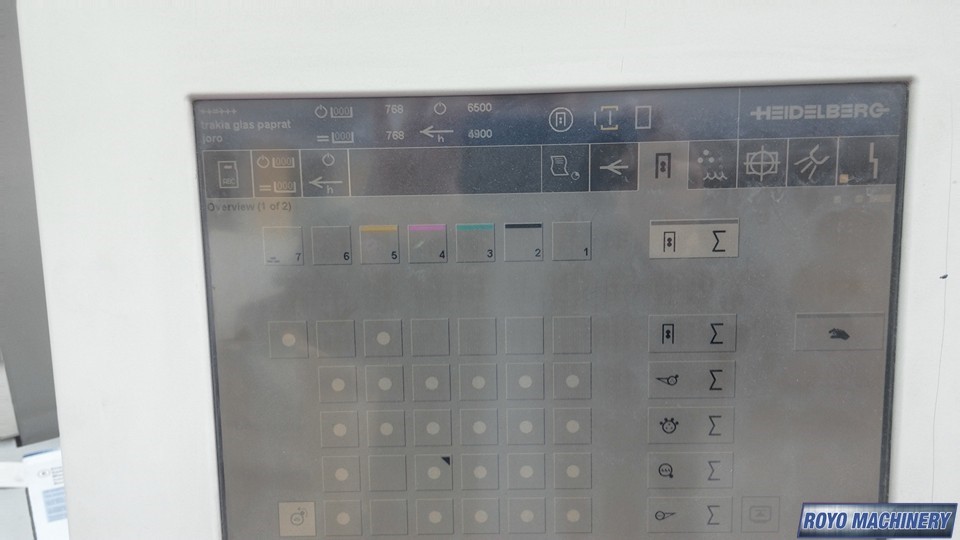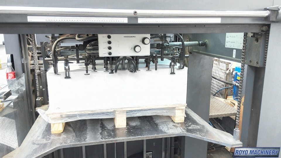Steel plate in feeder, Steel plate in delivery, Chrome Plate Blanket & Impression Cylinder, In-line coater, Alcolor Dampening, Pre-loader, Bacher pin register on clamps, Automatic ink roller wash, Ink temperature control, 15000 sph, IR Dryer, Preset, High pile delivery, Extended delivery, Double sheet detector, Grafix powder spray, Autoplate, Automatic Blanket Wash, Technotrans Refrigerated Recirculator, CP2000, Preset Feeder