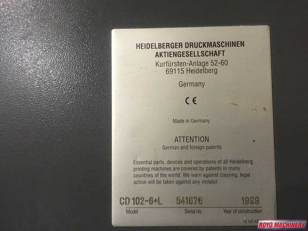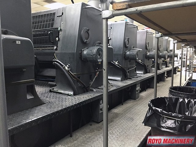 Stream Feeder, Steel plate in feeder, Steel plate in delivery, Refrigerated Recirculator, Preset, Pre-loader, Non-stop delivery, Intercom, In-line coater, Grafix powder spray, High pile delivery, Grafix IR Dryer, Extended delivery, Double sheet detector, Diagonal Register, CP2000, Bacher pin register on clamps, Autoplate, Automatic Blanket Roller and Impression Cylinder Wash, Alcolor Dampening, 15000 sph