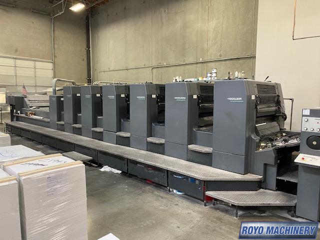 Steel plate in feeder, Steel plate in delivery, Non-stop delivery, In-line coater, Non-stop feeder, Bacher pin register on clamps, Automatic ink roller wash, Ink temperature control, CP2000, 15000 sph, High pile delivery, Extended delivery, Double sheet detector, Autoplate, Automatic Blanket Wash, Technotrans Refrigerated Recirculator, Alcolor Vario Dampening, Preset Feeder