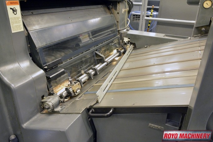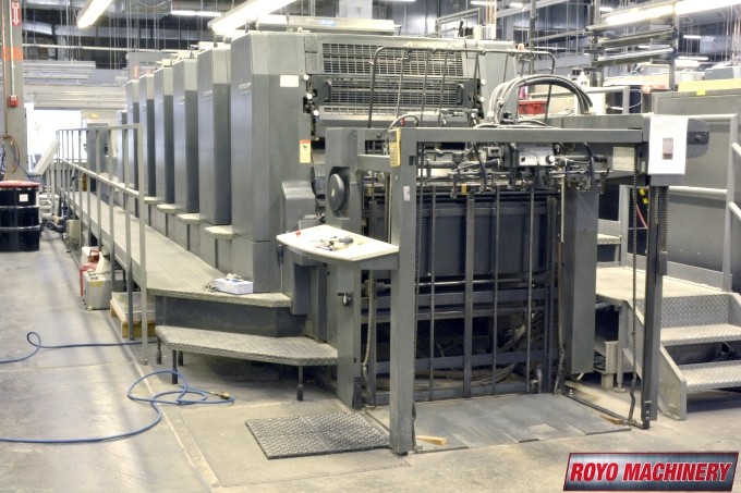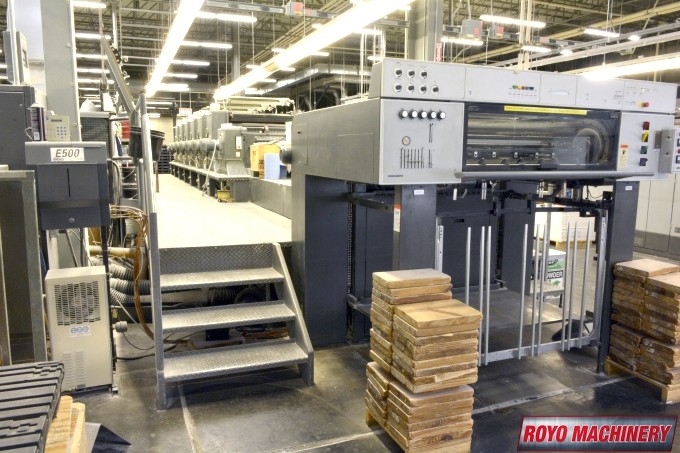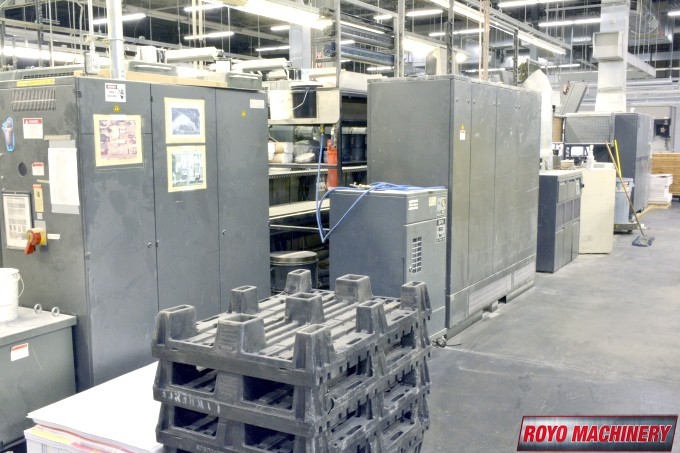 Stream Feeder, Steel plate in delivery, Royse Refrigerated Recirculator, Preset, Non-stop delivery, In-line coater, High pile delivery, Grafix powder spray, Grafix IR Dryer, Extended delivery, Double sheet detector, Diagonal Register, CPTronic, CPC 21 Densitometer Console, CPC 1.04, Bacher pin register on clamps, Automatic ink roller wash, Steel plate in feeder, 13000 sph, Non-stop feeder, Quick action plate clamps, Chrome Blanket Cylinders, Alcolor Vario Dampening