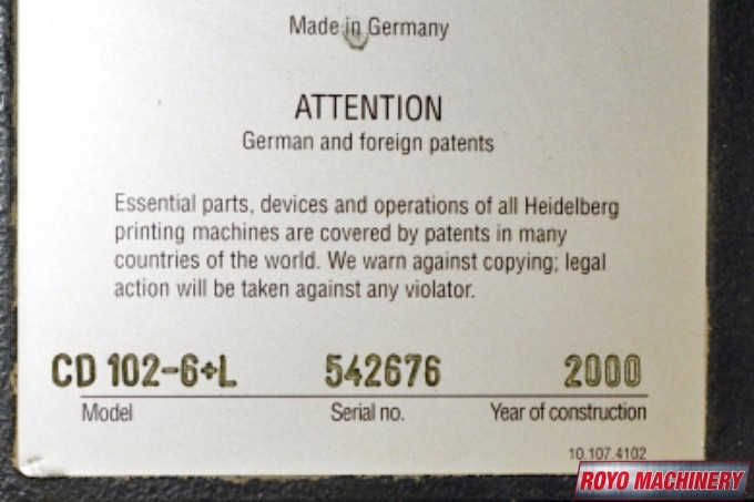 • Model: Speedmaster SM CD 102-6 + LX