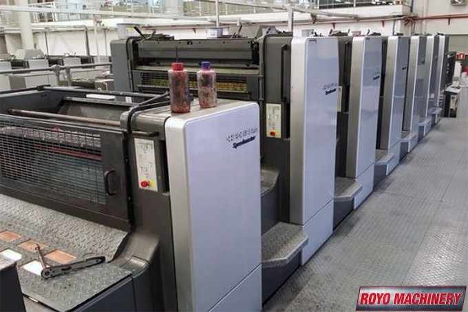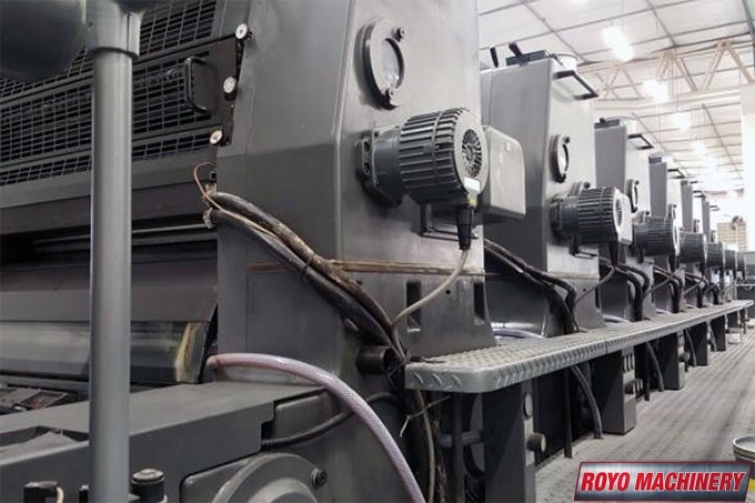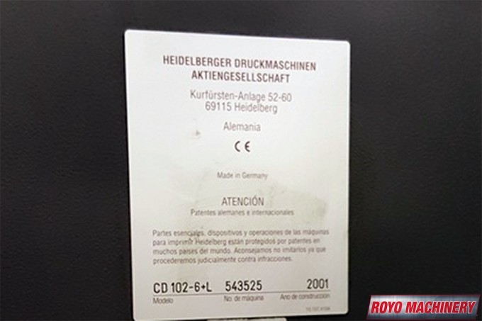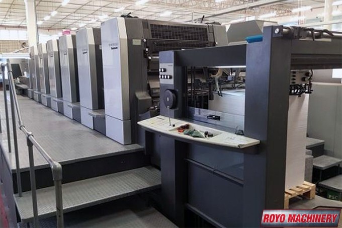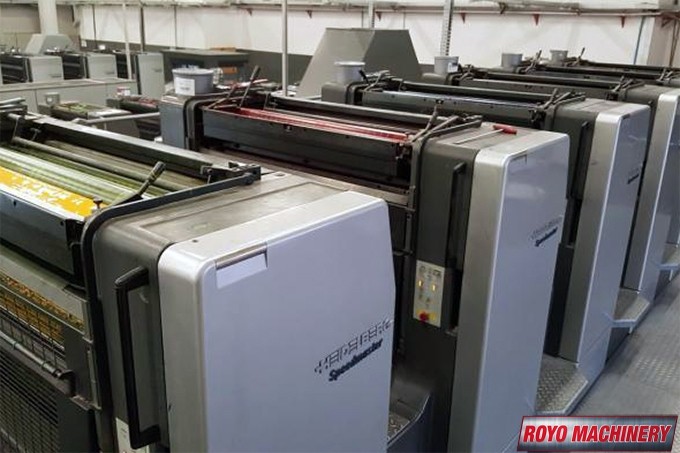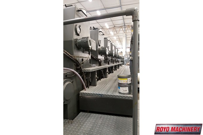 Technotrans Refrigerated Recirculator, Suction Tape on Feeder, Stream Feeder, Steel plate in feeder, Steel plate in delivery, Preset Feeder, Pre-loader, Non-stop delivery, Grafix Exatronic Duo Plus powder spray, In-line coater, High pile delivery, Extended delivery, Double sheet detector, Diagonal Register, CP2000, Bacher pin register on clamps, Autoplate, Heidelberg DryStar IR Dryer, Non-stop feeder, 15000 sph, Automatic Blanket Roller and Impression Cylinder Wash, Chrome Blanket Cylinders, Alcolor Vario Dampening