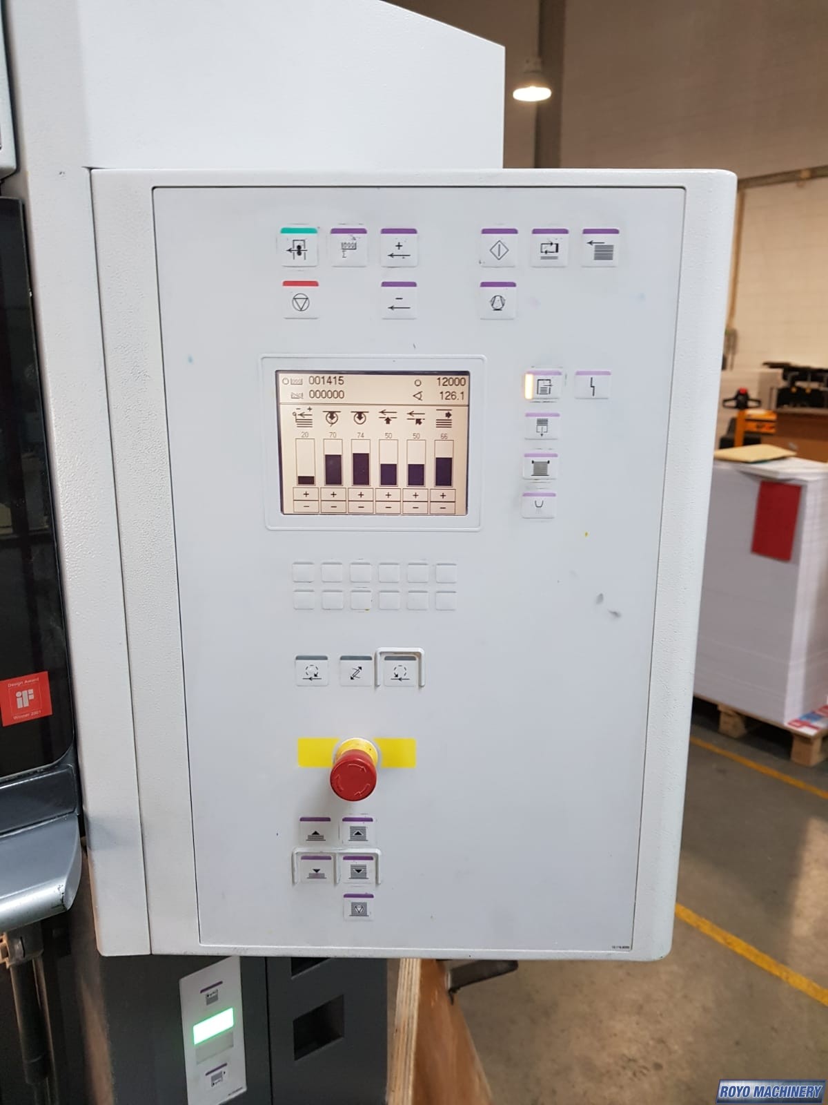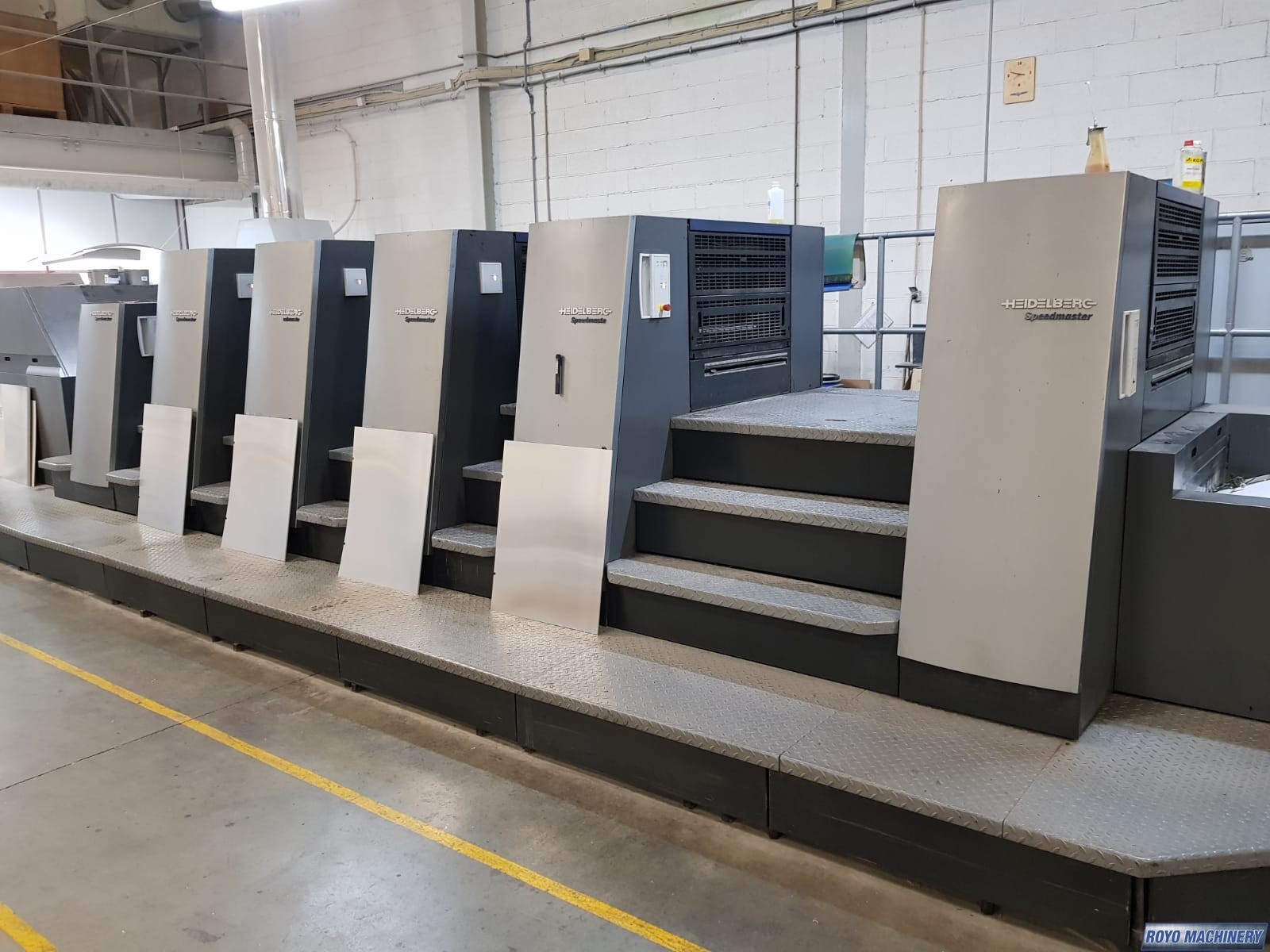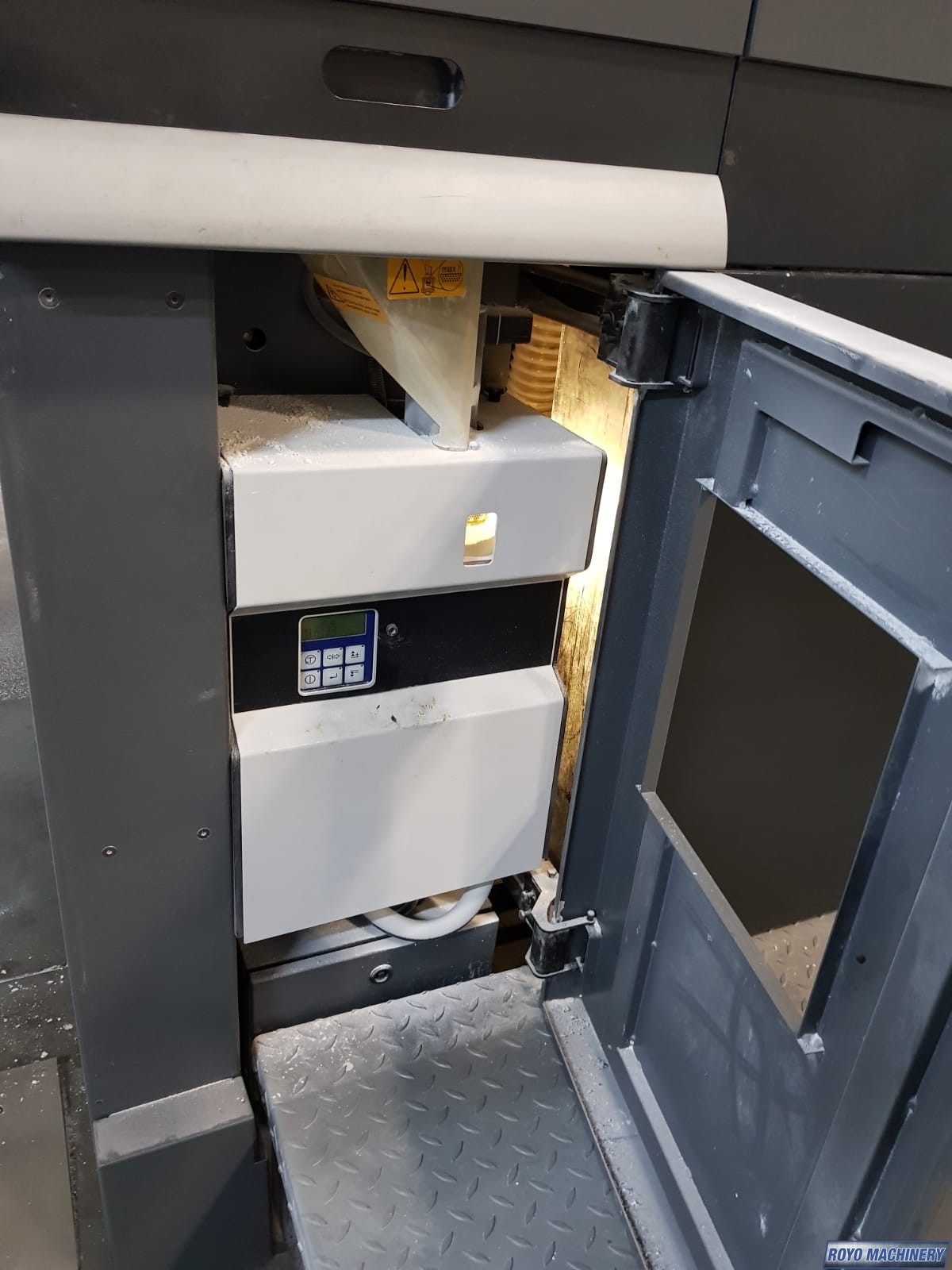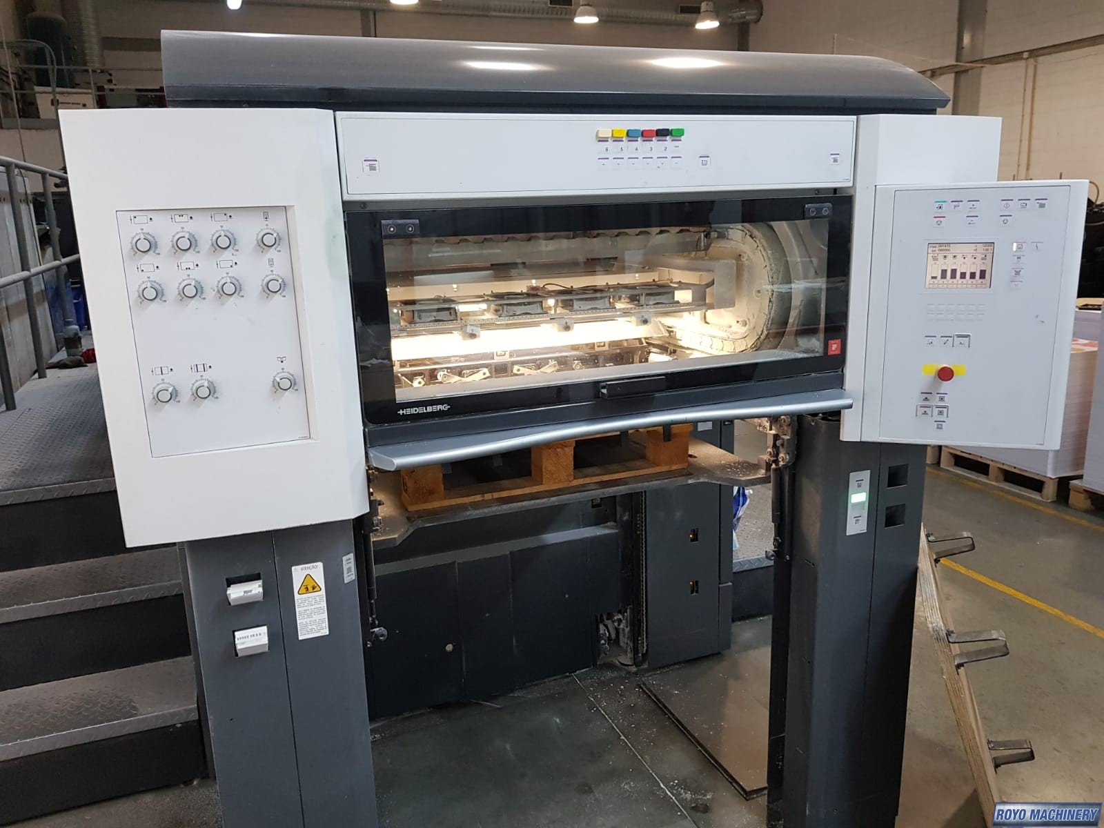 Suction Tape on Feeder, Steel plate in feeder, Stream Feeder, Steel plate in delivery, In-line coater, Non-stop delivery, High pile delivery, Grafix Exatronic powder spray, Double sheet detector, Diagonal Register, CP2000, C Format: 53 x 74 cm, Bacher pin register on clamps, Autoplate, Automatic Blanket Roller and Impression Cylinder Wash, 15000 sph, Alcolor Dampening, Technotrans CombiStar CAN with AlcoSmart, Preset Plus Feeder, Preset Plus Delivery, Heidelberg DryStar IR Dryer, Heidelberg CombiStar with CAN