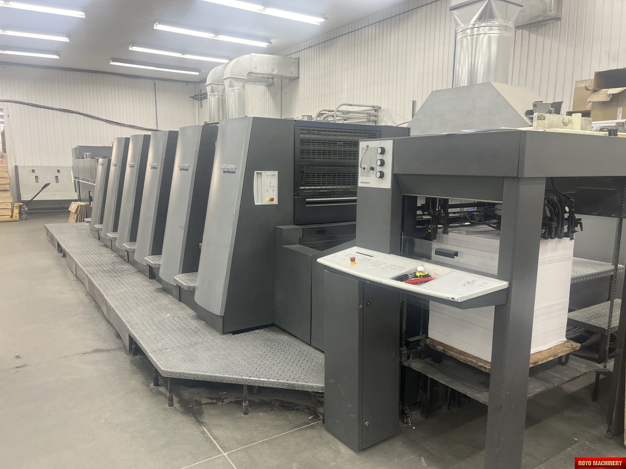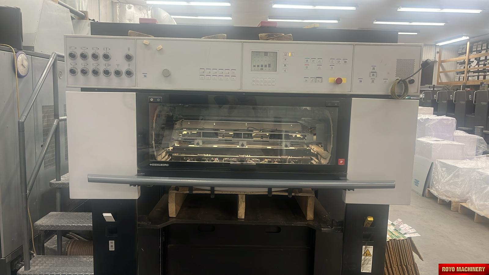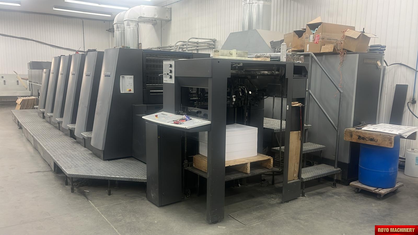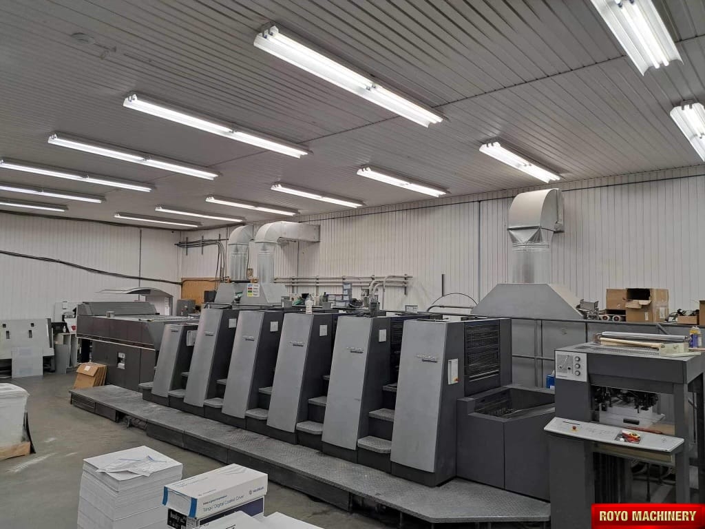 Preset Plus Feeder, Steel plate in feeder, Technotrans Combistar, Suction Tape on Feeder, Stream Feeder, Steel plate in delivery, Heidelberg DryStar IR Dryer, Ultrasonic double sheet detector, Non-stop feeder, Non-stop delivery, 15000 sph, In-line coater, High pile delivery, Straight Machine, Extended delivery, Double sheet detector, Diagonal Register, CP2000, Bacher pin register on clamps, Autoplate, Automatic Blanket Roller and Impression Cylinder Wash, Alcolor Vario Dampening, Silver Series Machine, Preset Plus Delivery, Preset, Heidelberg AirStar, Grafix Exatronic powder spray, Electronic sidelay control, CombiStar refrigeration with ink temperature control, Chrome Plate Blanket & Impression Cylinder, C Format: 53 x 74 cm