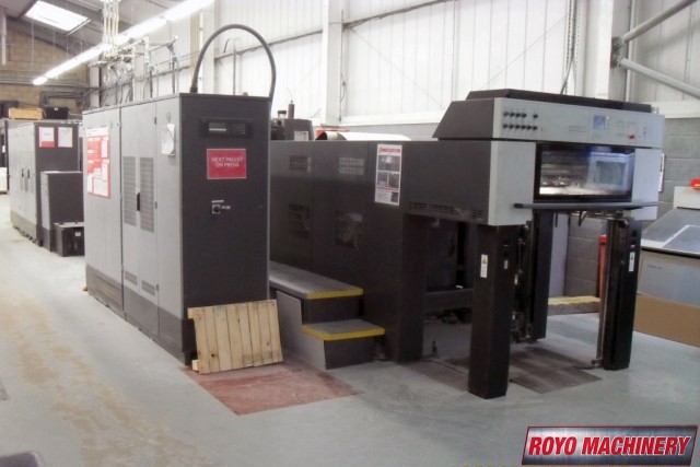 Suction Tape on Feeder, Stream Feeder, Steel plate in feeder, Steel plate in delivery, Refrigerated Recirculator, Preset, IR Dryer, Ink temperature control, In-line coater, High pile delivery, Grafix powder spray, F Format: 600 x 740 mm, Extended delivery, Double sheet detector, Diagonal Register, CP2000, Coater with Anilox roller, Bacher pin register on clamps, Autoplate, Alcolor Dampening, 15000 sph