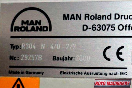Stream feeder, Rolandmatic, Recirculator Refrigerator, RCI (Remote Controlled Inking), Powder Spray, High pile delivery, CPL (Semi-auto plate loading), 15000 sph, Steel plate in feeder & delivery