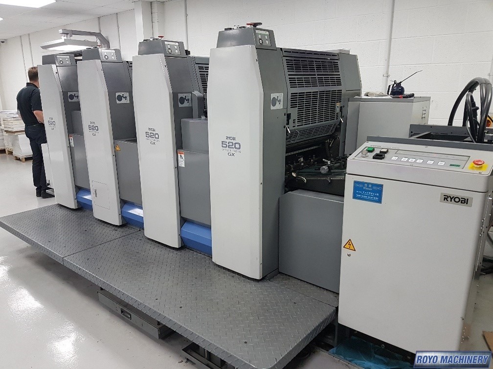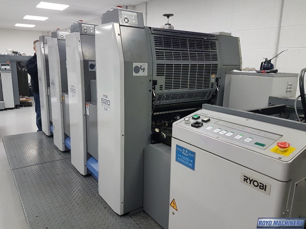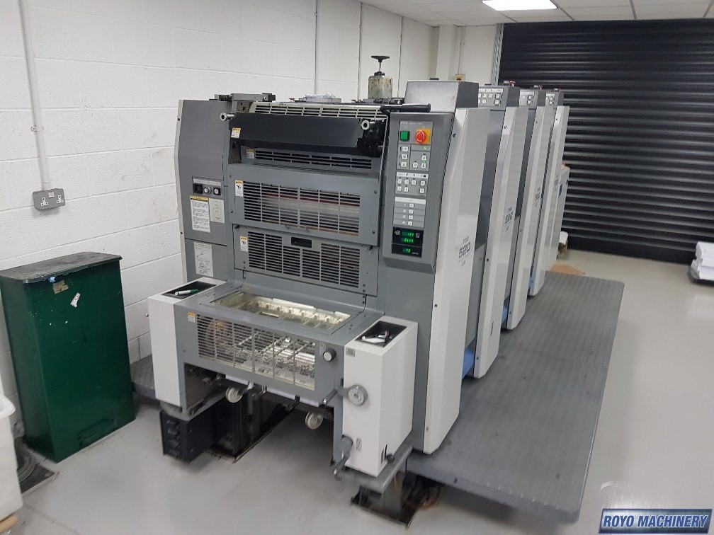 PCS Color Console, Low pile delivery, Suction Tape on Feeder, AAC (Aqua Automatic Control), Technotrans Refrigerated Recirculator, Stream feeder, Double sheet detector, Graifx powder spray, Preset, 13000 sph, Fully automatic perfecting unit, Ryobimatic continuous dampening system, Pin Register on Clamps, Automatic Blanket Roller and Impression Cylinder Wash, Autoplate (semiautomatic plate changer), Diagonal Register, Lateral and circumferential register control