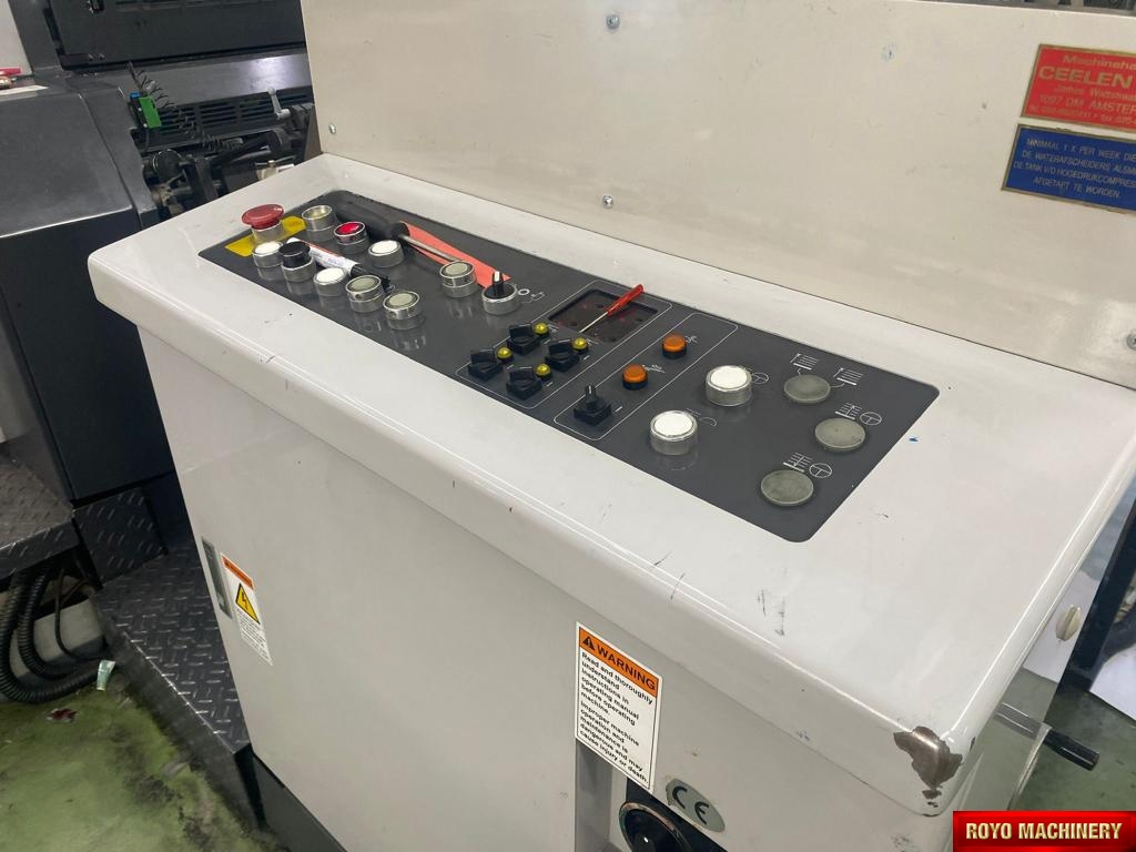 Stream feeder, Sheet decurler, Recirculator Refrigerator, Powder spray, Double sheet detector, Color Console, High pile delivery, Non-stop delivery, Shinohara alcohol dampening, Suction tape on feeder, Autoplate, 13000 sph
