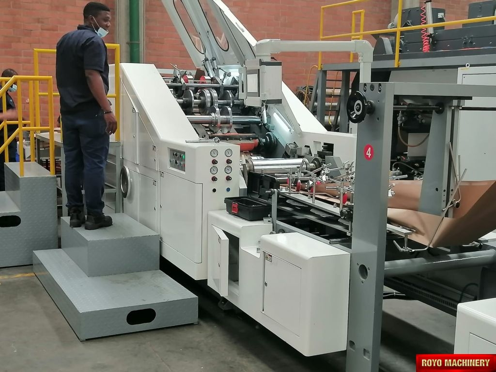 Cut-off Length: 370-680 mm, Width of Bag Bottom: 80-220mm , Cardboard inner reinforcement applicator, Total Power: 15kw, Square bottom bag making machine, Paper thickness: 80-160 gsm, Max. Speed: 120 pcs/min, Precision: +-0.2mm, D-Cut handle inline die cutting, Paper Bag Width: 220-450 mm, Max. Paper Roll Width: 1300mm, Max. Paper Roll Diameter: 1500mm, In-line Flexo Printing: Optional, Paper roll core diameter: 76mm, Dimensions: 10000 x 2500 x 1800 mm