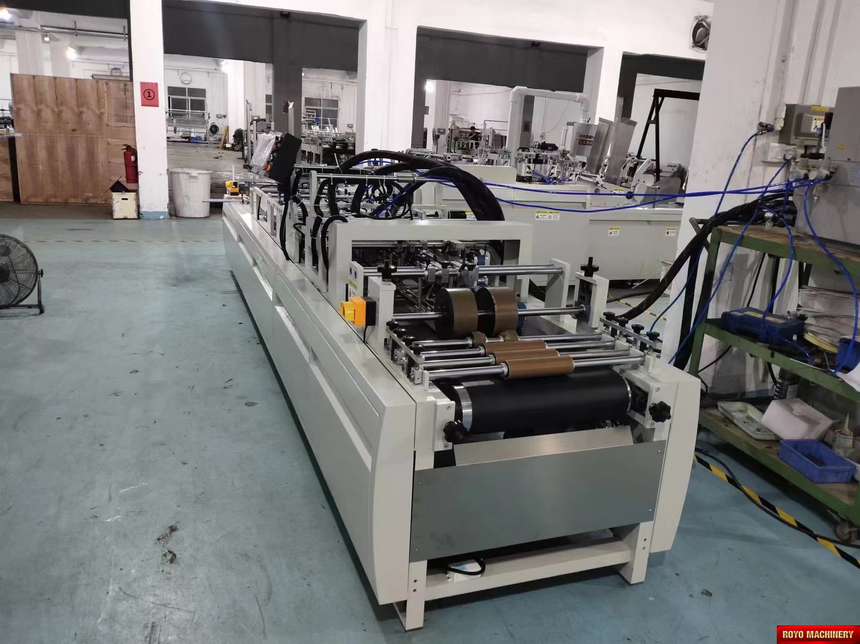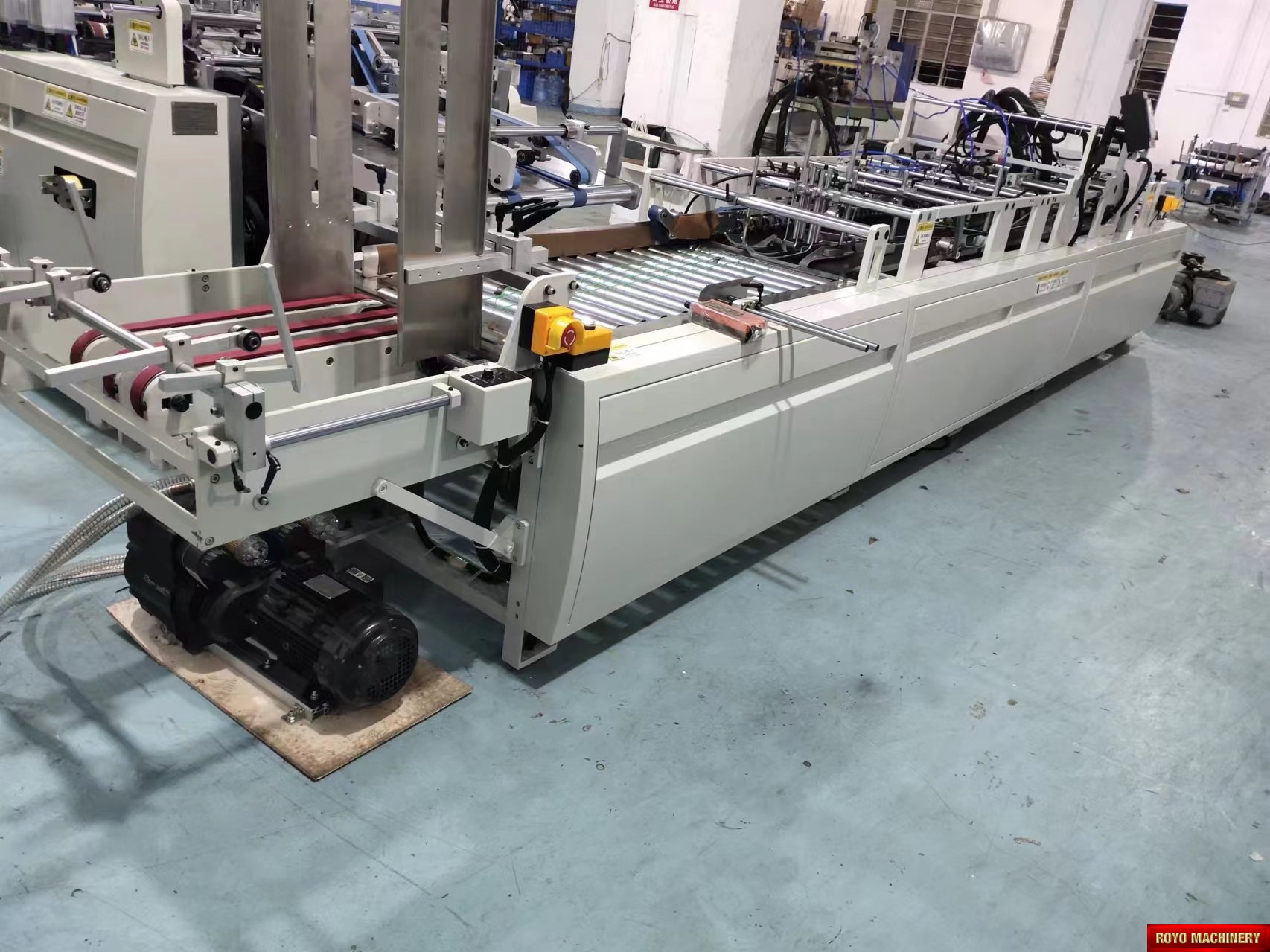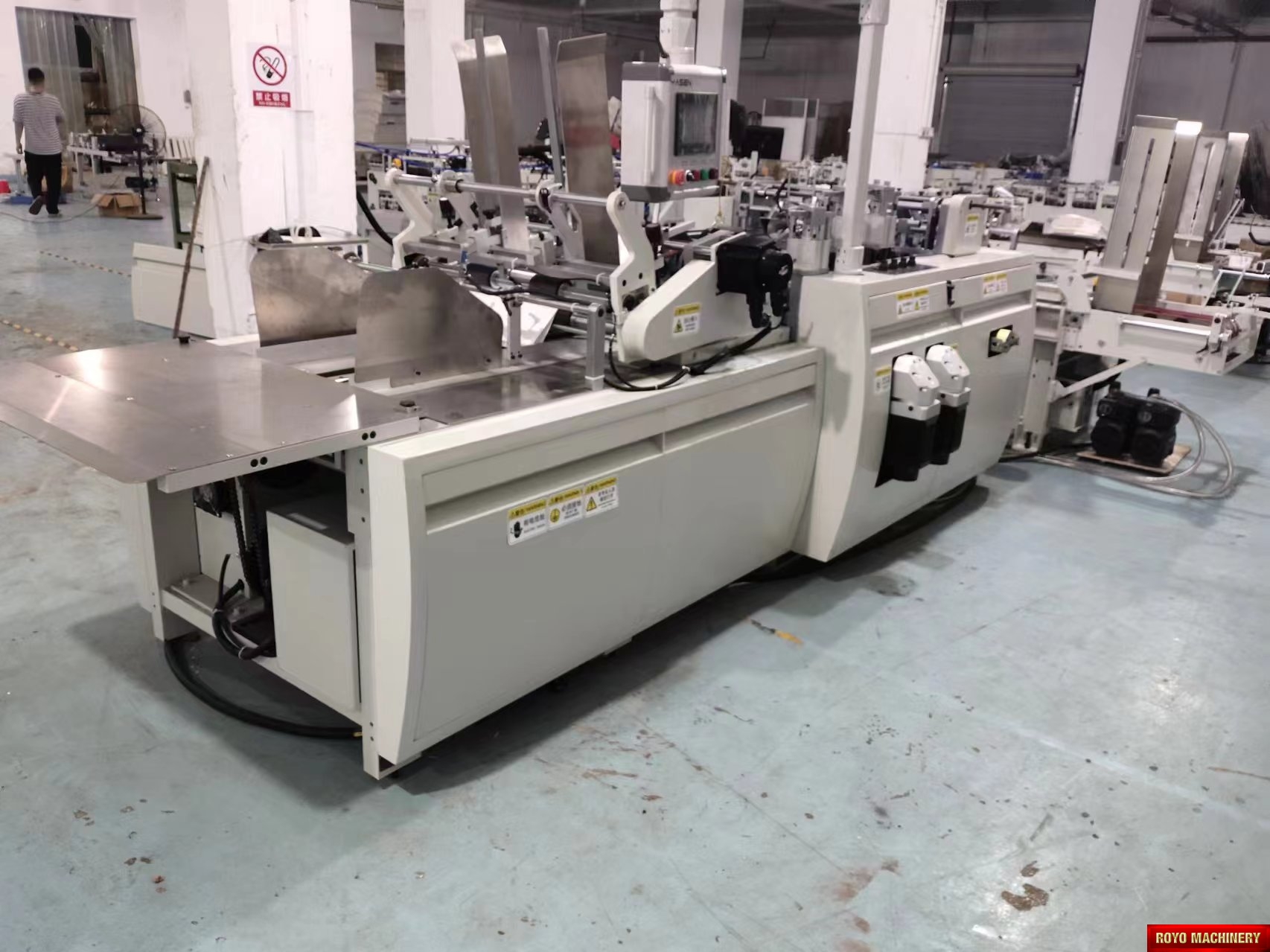 Square bottom bag making machine, Top folding (Neck reinforcement): 30-70 mm, Speed: 0-70 pcs/min, Side folding (Gusset): 60-180 mm, Sheetfed paper bag-making machine, Paper Bag Width: 100-410 mm, Paper Bag Length: 200-580 mm, Laminated paper thickness: 157-350 gsm, Kraft paper thickness: 120-300 gsm, Min. paper size: 320 x 300 mm, Max. paper size: 1060 x 600 mm