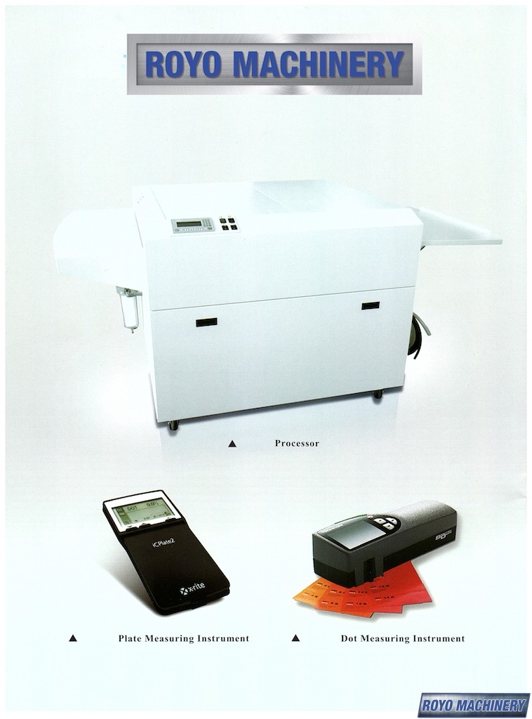 Total Weigth: 1000 lb, Total Power: 3.5kW, Size: 1700 x 1240 x 1050 mm, Roller Diameter: 60mm, Plate thickness: 0.15 - 0.40 mm, Min. plate length: 300 mm, Max. Plate Width: 900mm, For Conventional Positive Negative PS Thermal CTP CTcP Plates, Drying Temperature: 30 to 70 C, Developing Time: 20 to 60 Seconds, Developing Temperature: 15 to 40 C, Developer Capacity 45 Liters, Brush Diameter: 50mm, Automatic gumming