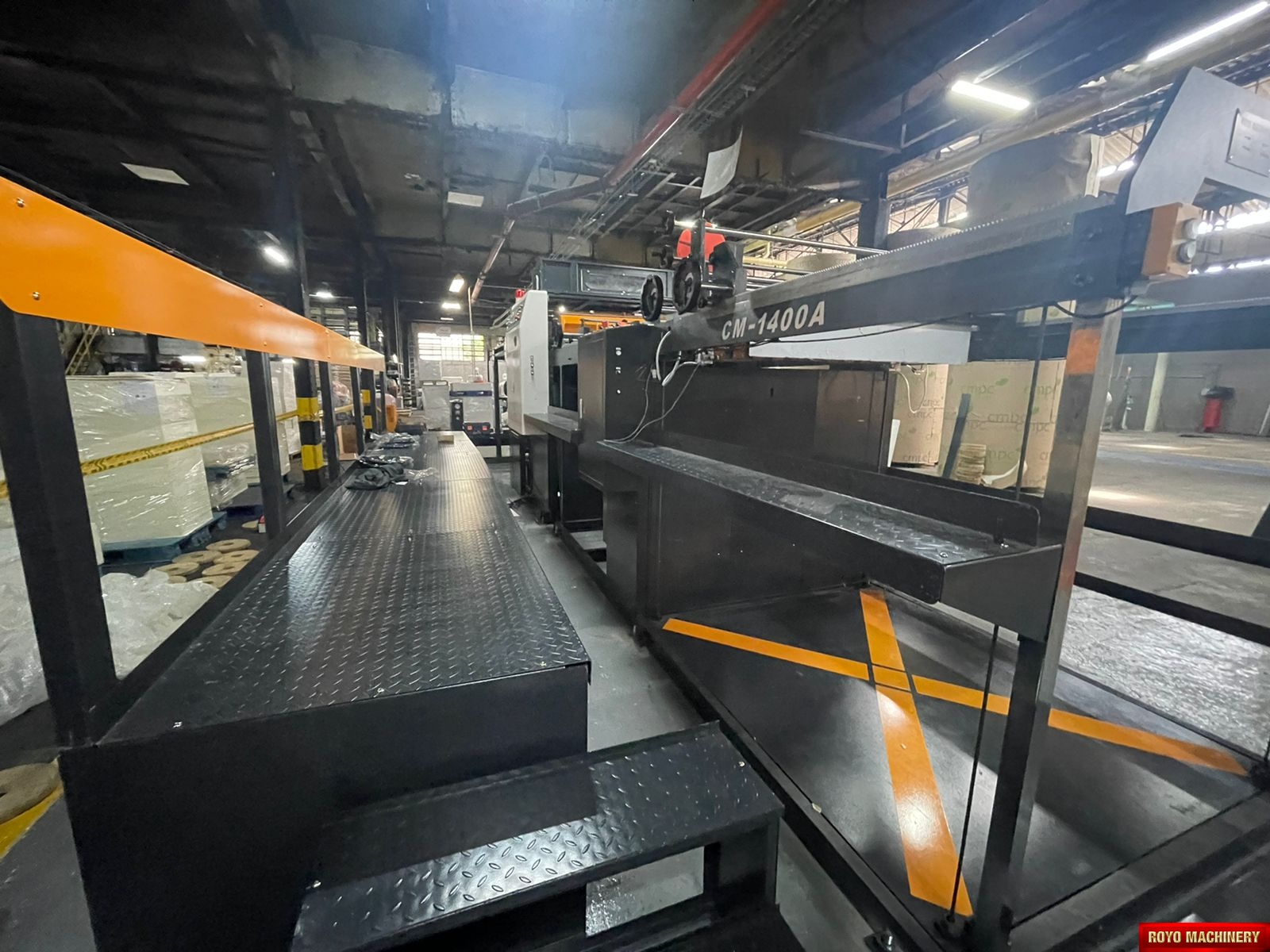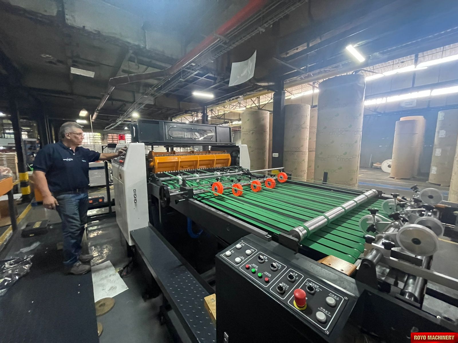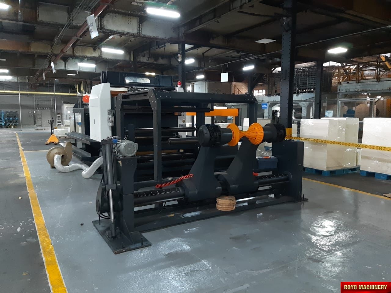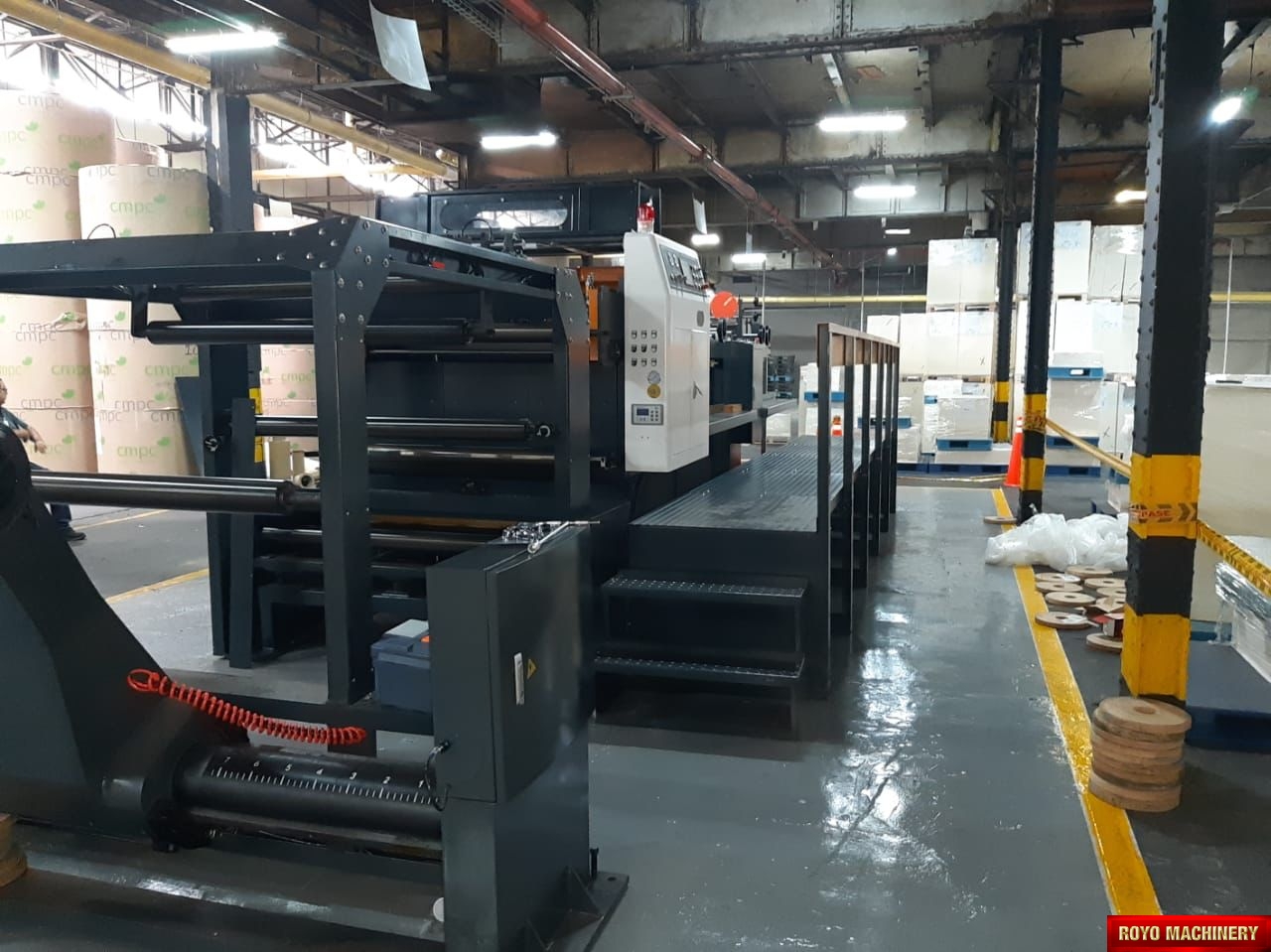 Paper tensioning control, Rotary upper knife and fixed lower knife, Total Weight: 11000kg, Max. Paper Width: 1400mm, Max. cutting speed: 300 cuts/min, Color LCD operating panel, Auto cut length adujstment system, Self adjusting air brakes, Rotary Knife, Paper thickness: 60-550 gsm, Overlapper & piler, Max. roll diameter: 1800mm, Dimensions: 7831 x 2151 x 1850 mm, Cut-off range: 18-55", Cut off tolerance: +/- 0.5mm, 1x Roll Stand, Suggested HS code: 8441.10.0000