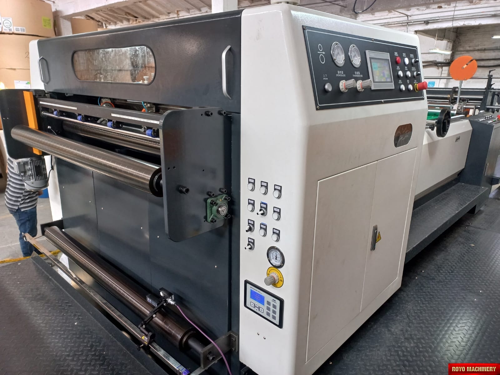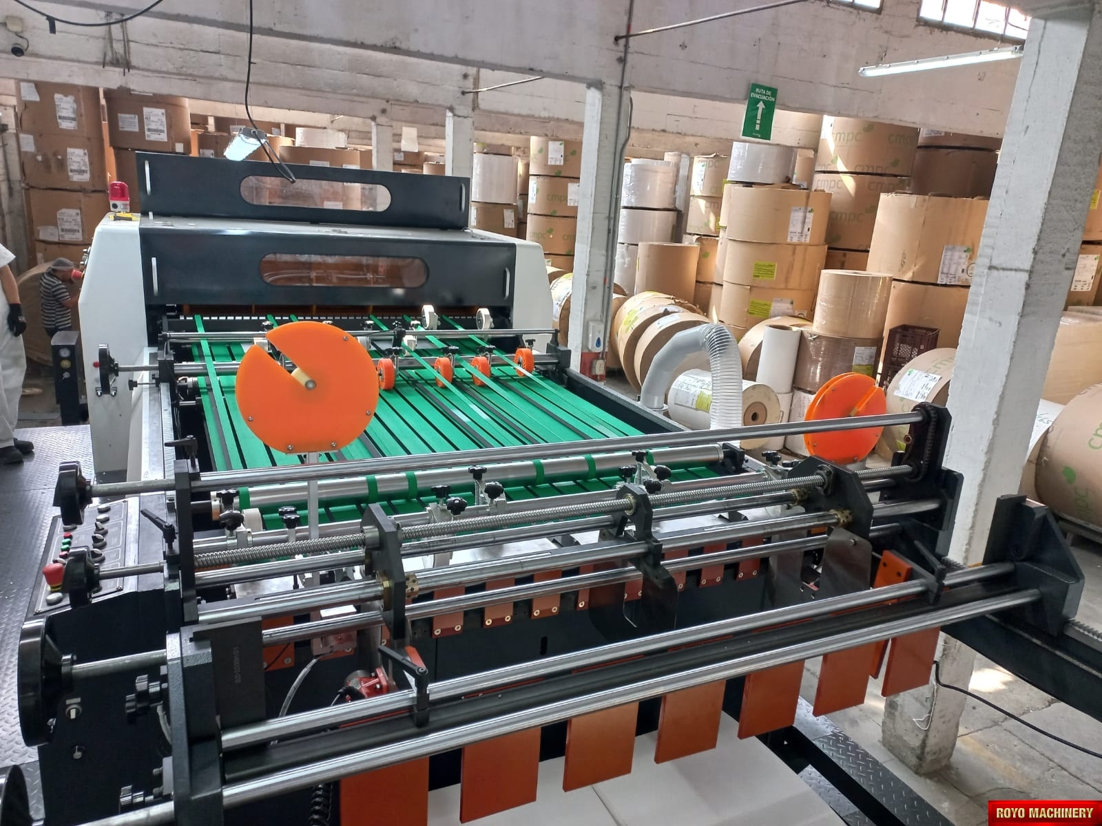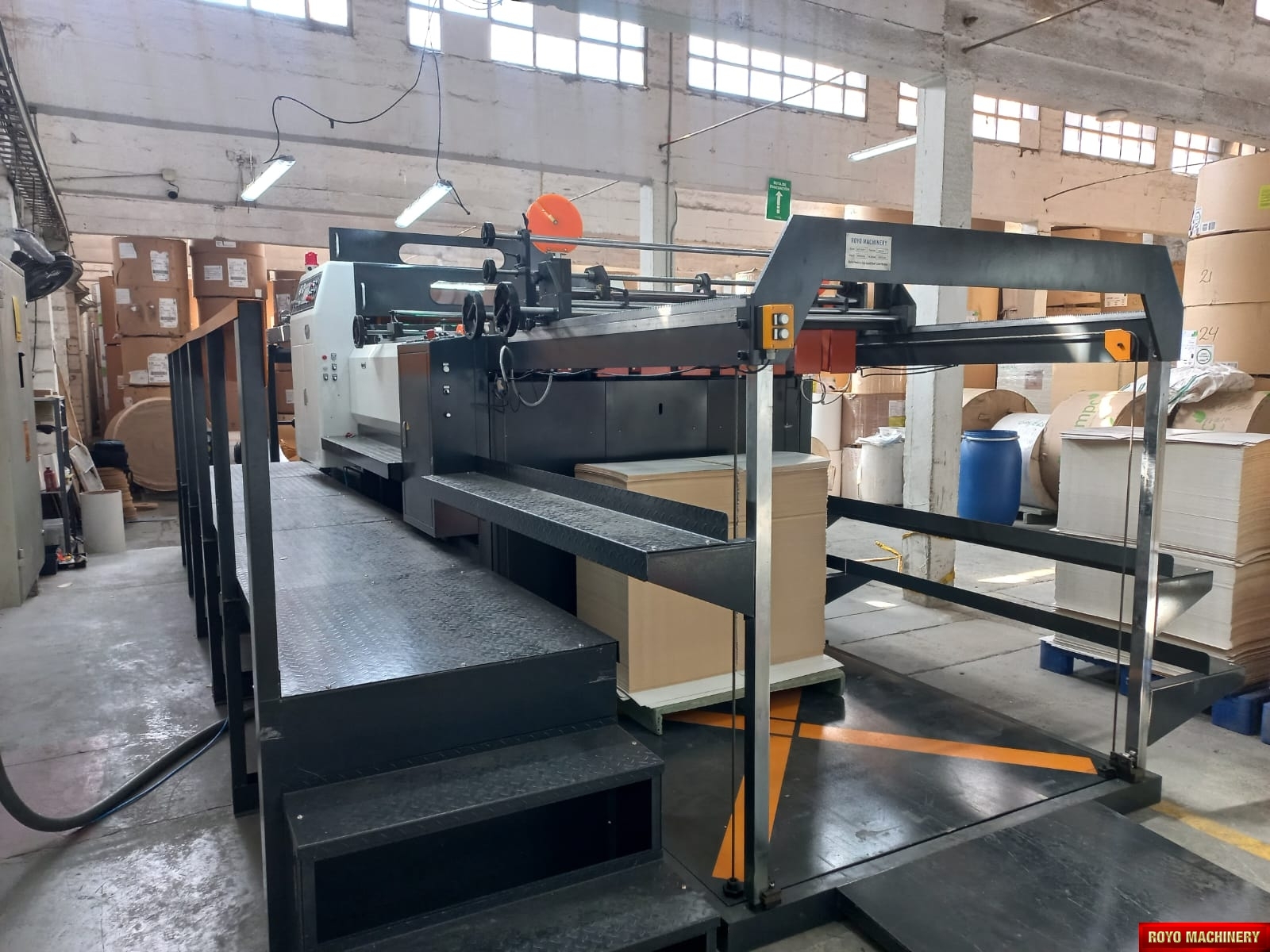 Paper tensioning control, Rotary upper knife and fixed lower knife, Total Weight: 11000kg, Three pneumatic Festo slitters, Max. paper width: 1500mm, Max. cutting speed: 300 cuts/min, Color LCD operating panel, Auto cut length adujstment system, Self adjusting air brakes, Rotary Knife, Paper thickness: 60-550 gsm, Overlapper & piler, Max. roll diameter: 1800mm, Total Power: 26kw, Cut-off range: 18-65", Waste Bag Extraction, 2x Roll Stands, Suggested HS code: 8441.10.0000, Hydraulic shaftless mill roll stands, Phoelectric tracking system, Cut off tolerance: +/- 0.1-0.5mm, Dual tab inserter, Edge positioning controller, Delivery pile height: 1500mm, Dimensions: 11793 x 2310 x 1850 mm, Max. cutting speed: 400 m/min