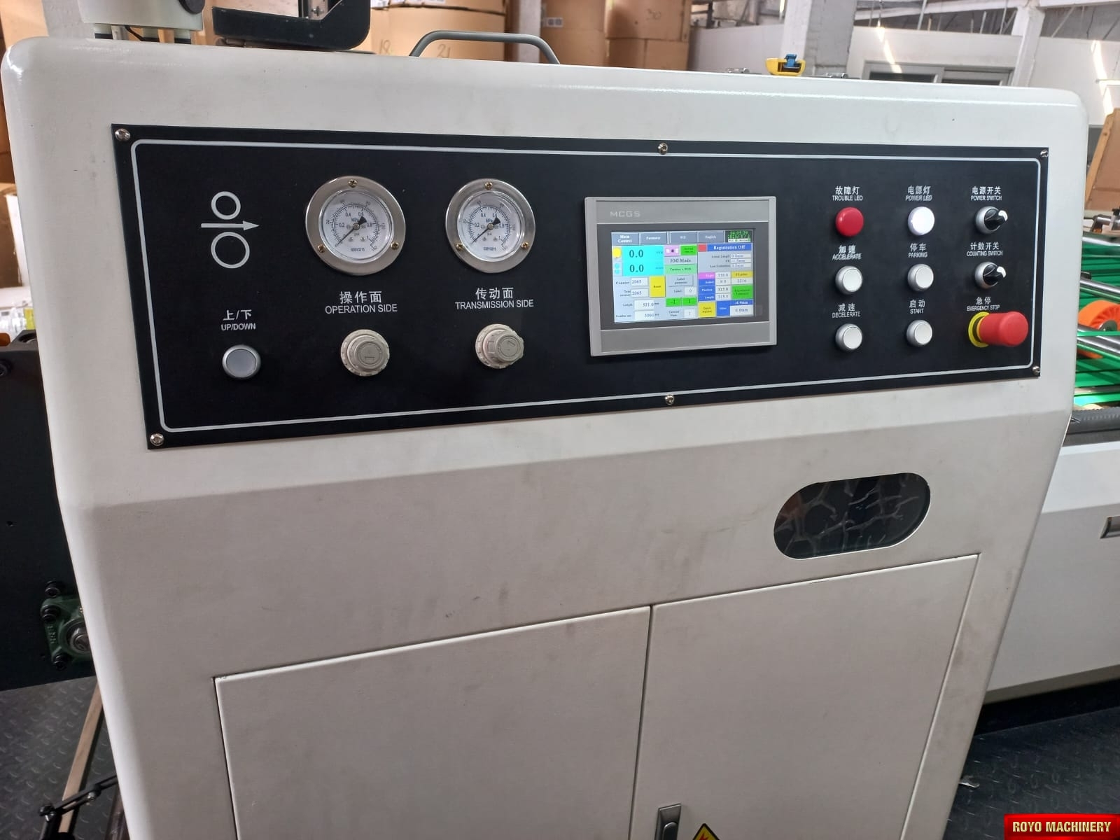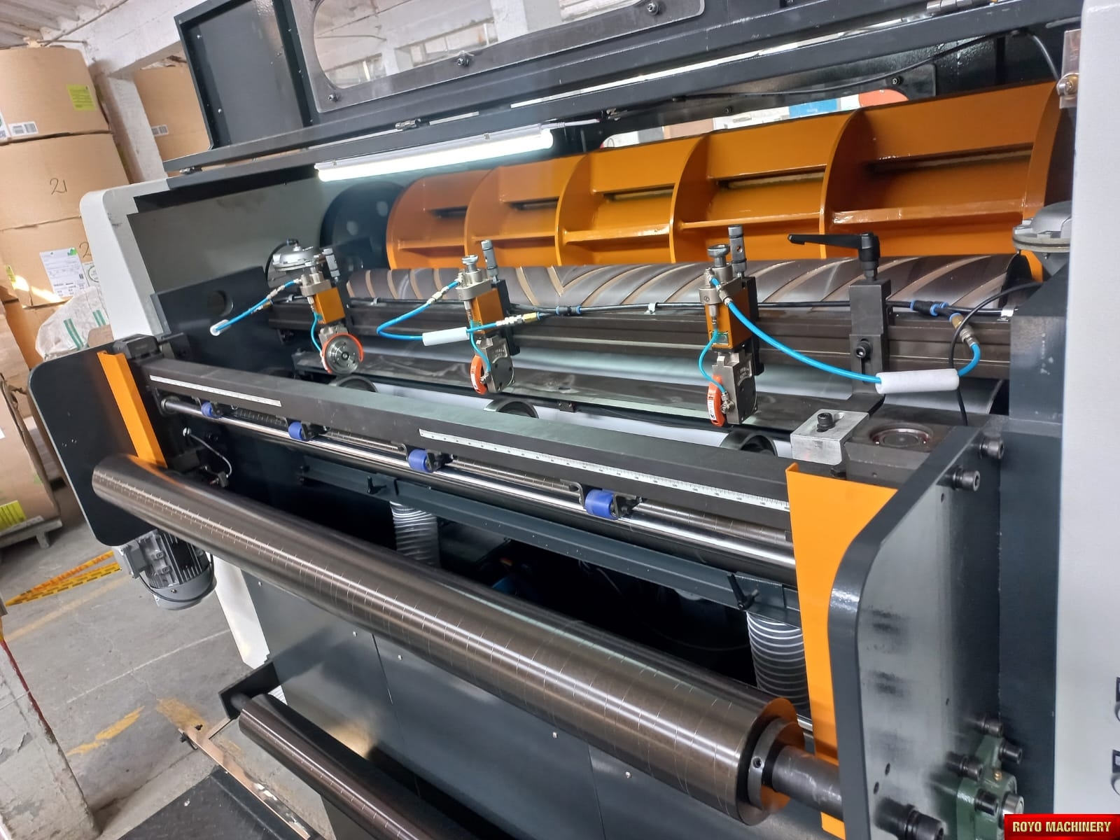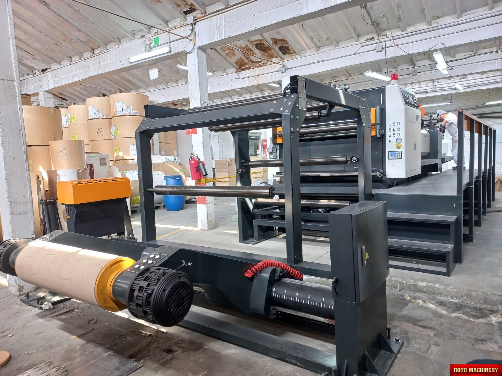 Paper tensioning control, Rotary upper knife and fixed lower knife, Total Weight: 11000kg, Three pneumatic Festo slitters, Max. paper width: 1500mm, Max. cutting speed: 300 cuts/min, Color LCD operating panel, Auto cut length adujstment system, Self adjusting air brakes, Rotary Knife, Paper thickness: 60-550 gsm, Overlapper & piler, Max. roll diameter: 1800mm, Total Power: 26kw, Cut-off range: 18-65", Waste Bag Extraction, 2x Roll Stands, Suggested HS code: 8441.10.0000, Hydraulic shaftless mill roll stands, Phoelectric tracking system, Cut off tolerance: +/- 0.1-0.5mm, Dual tab inserter, Edge positioning controller, Delivery pile height: 1500mm, Dimensions: 11793 x 2310 x 1850 mm, Max. cutting speed: 400 m/min