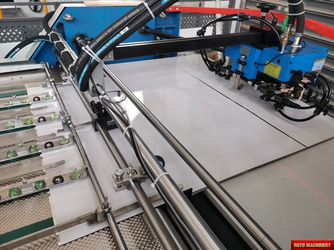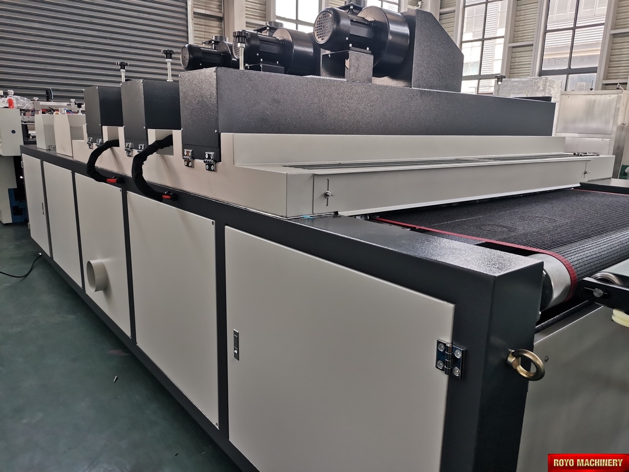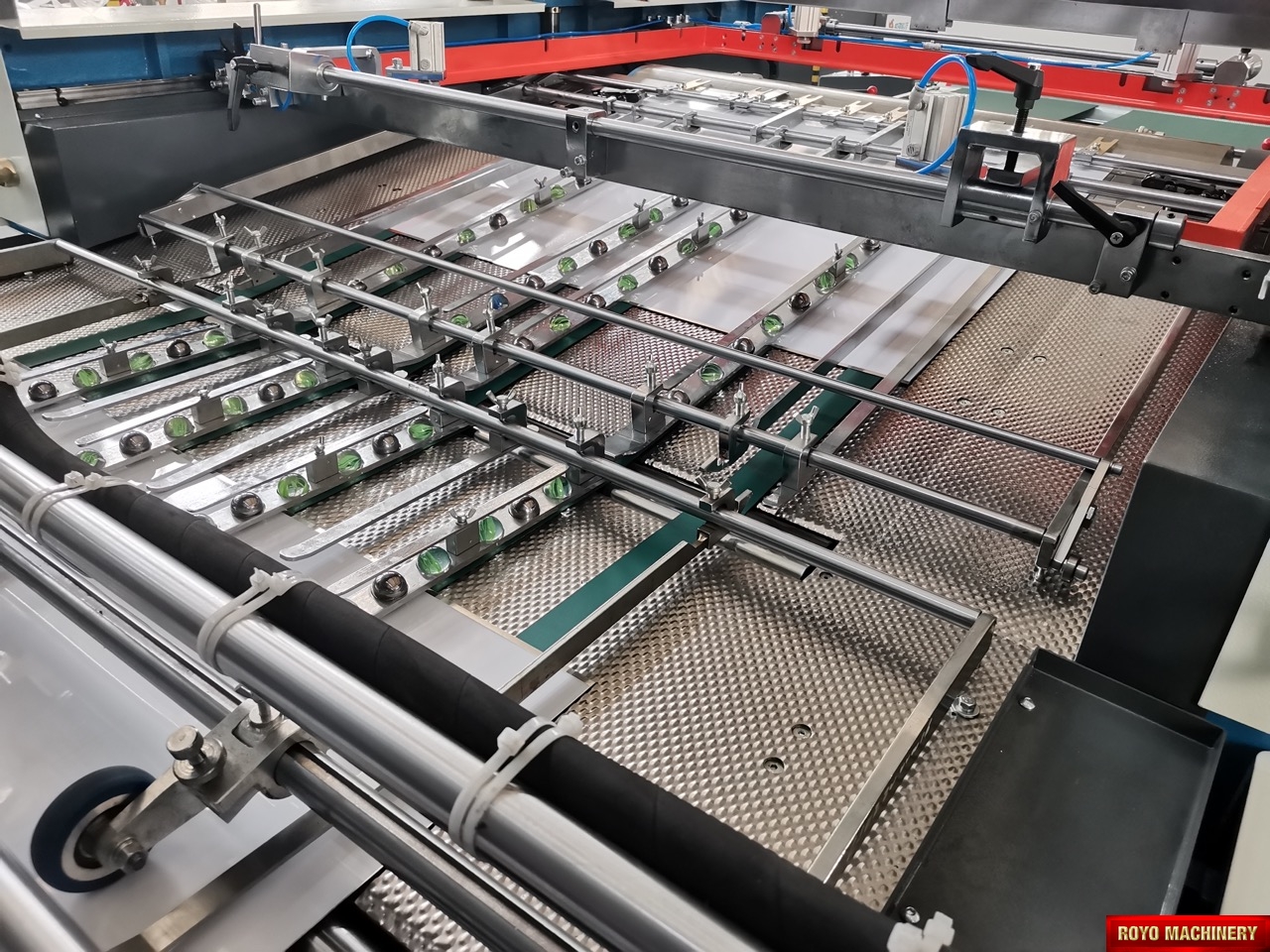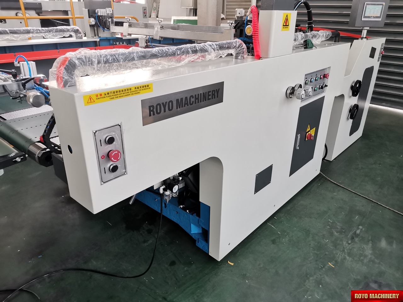 Paper thickness: 120-350 gsm, Dimensions: 11200 x 2350 x 1320 mm, Margin < 13 mm, Speed: 1000 - 3000 sheets per hour, Weight 7.6t, Screen frame size: 1280 x 1140mm, Max. Printing size: 1050 x 750mm, Total Power: 48.00kw, UV lamp power: 9.75 kW x 3 lamps, IR lamp power: 1.5 kW x 4 lamps (optional)