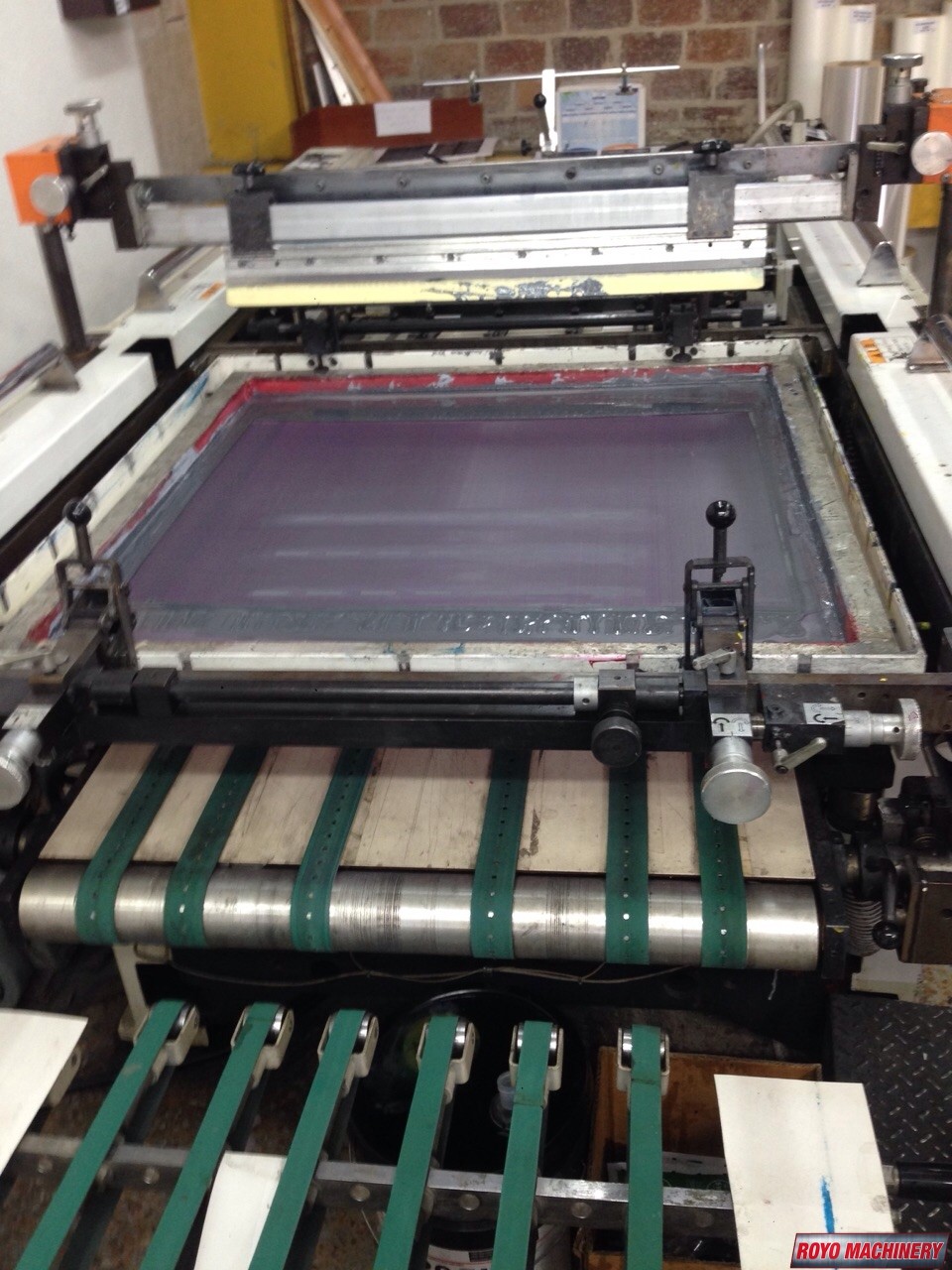 Weight: 5100 lbs., UV Curing System, Stock thickness: 0.003" - 0.031", Running Speed (IPH): 1000 - 3600, Total Power: 4.94kw, Max. Stock Size: 28 3/8" x 20 1/2", Max. Print Size: 28 3/8" x 19 3/4", Feeder, Crush Roller, Squeegee holder, Min. Stock Size 13 7/8" x 10 5/8", Dimensions: L 116" W 72" H50"