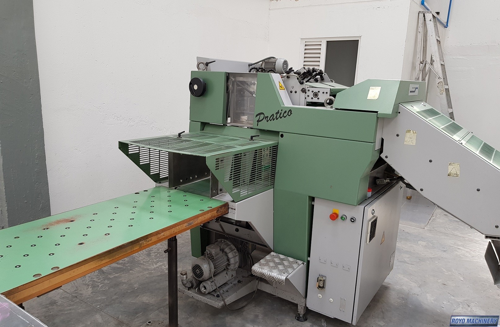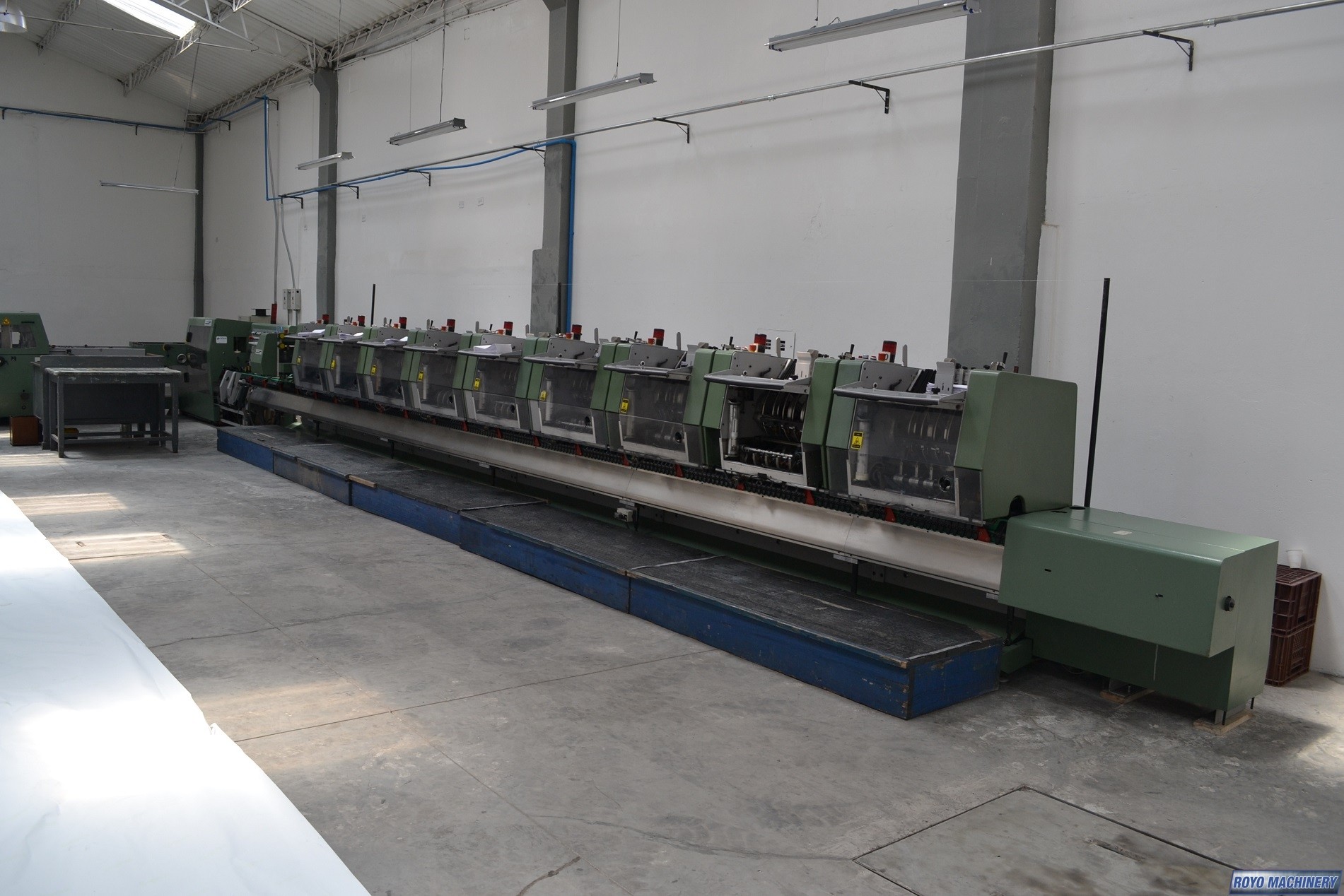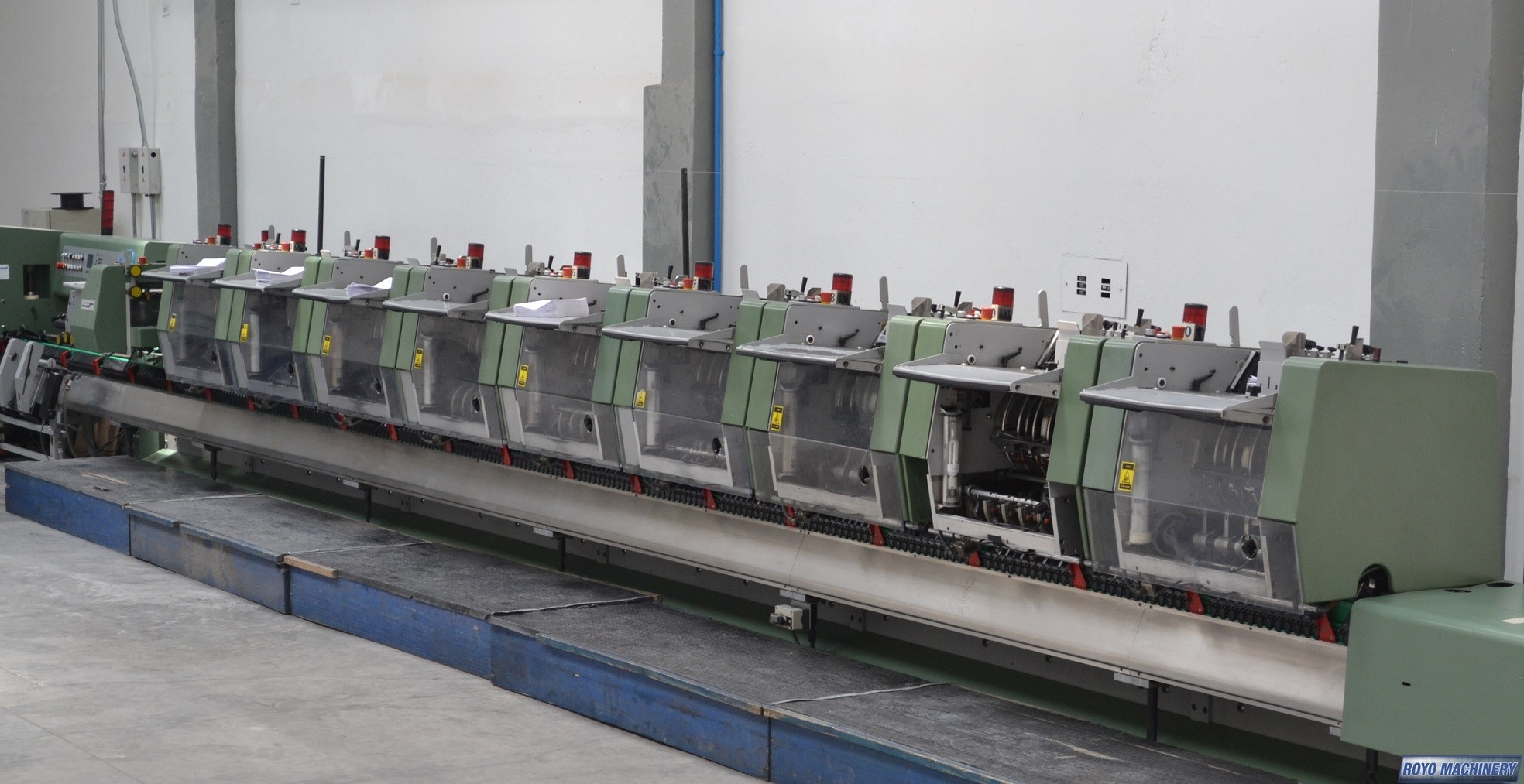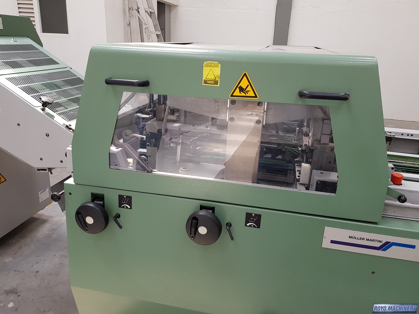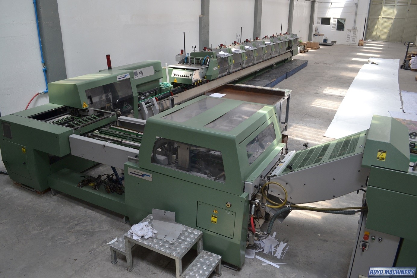 Trim removal, Three knife trimmer, Rima stacker, 8 pockets, Saddle stitcher, Belt delivery, Stacker Pratico, Cover feeder, 12000 Cycles per hour